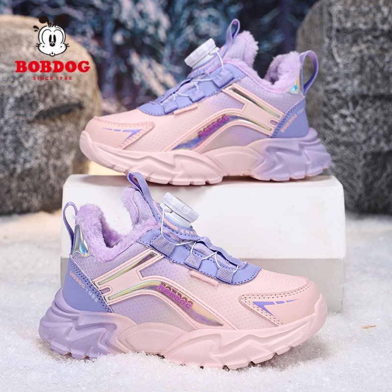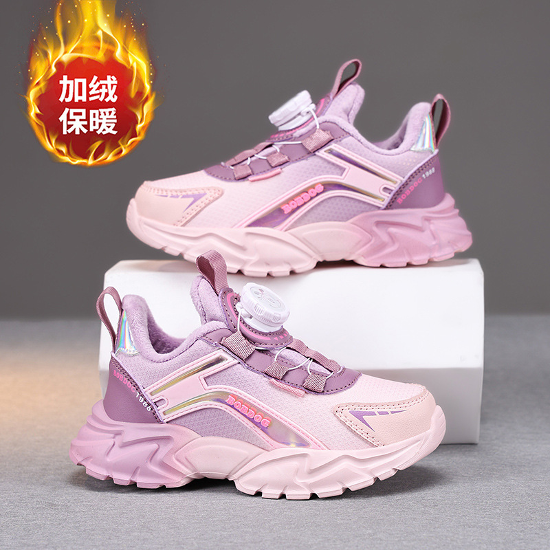 바부두 아동화 여아 운동화 2025 겨울용 플러스 벨벳 보온 아동용 이중 면화 신발 여아용 경량 러닝화