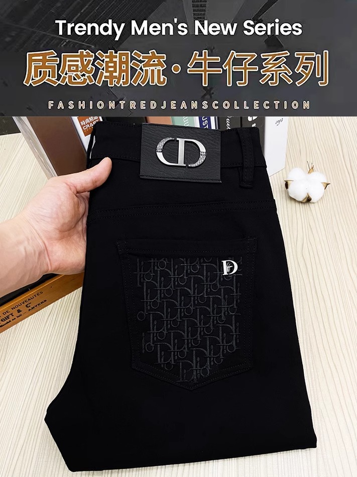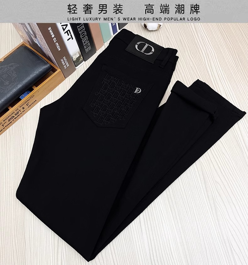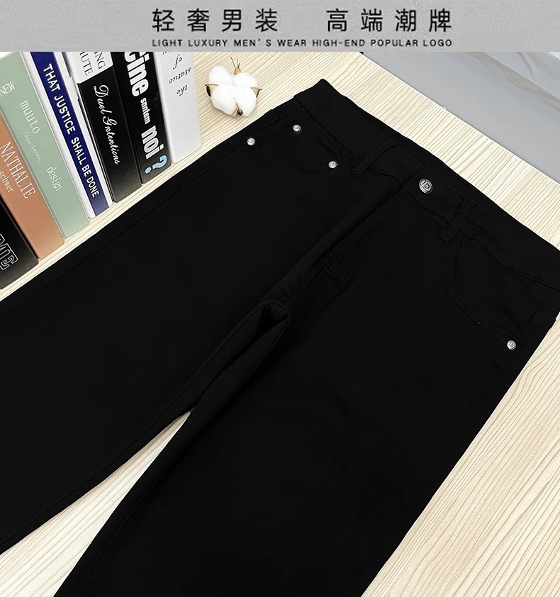 봄과 여름 새로운 청바지 남성 하이 엔드 자수 블랙 스트레치 슬림 핏 스키니 팬츠 트렌디 브랜드 캐주얼 패션 긴 바지스토어 가기
