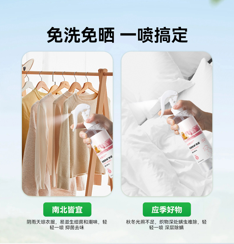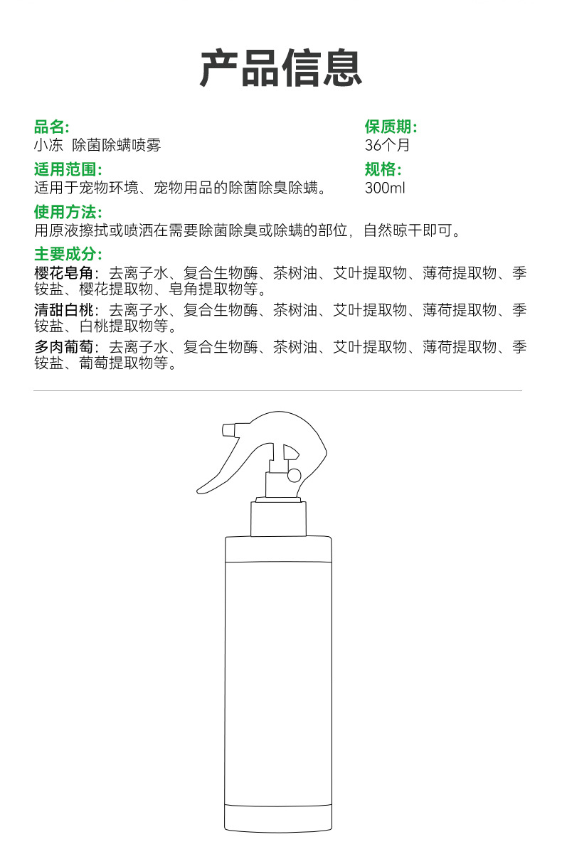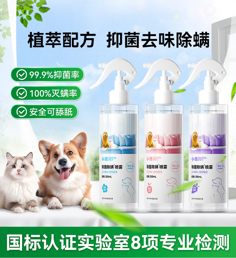 작은 냉동 살균 및 진드기 제거 스프레이 펌프 헤드 화이트 복숭아 벚꽃 탈취제 스프레이 300ml 애완 동물 탈취제 청소 용품스토어 가기
