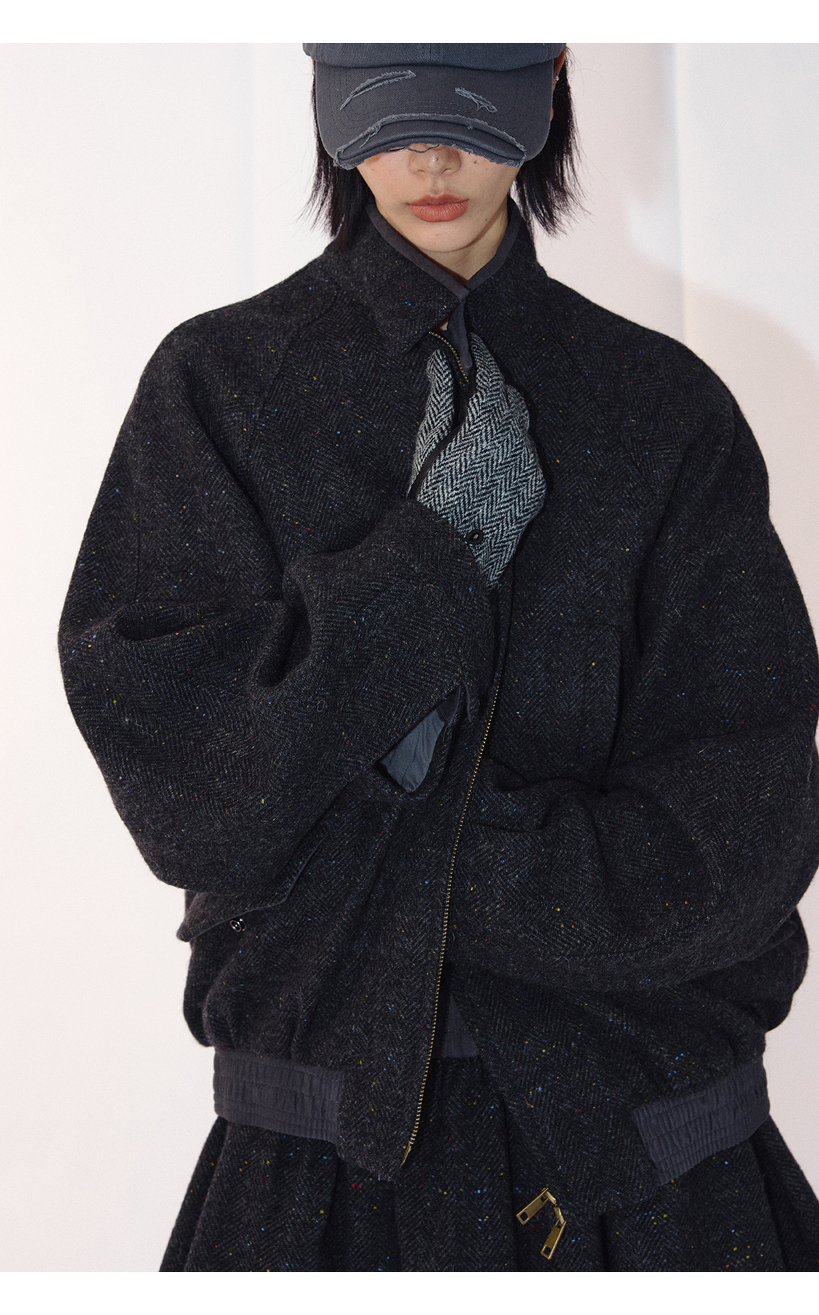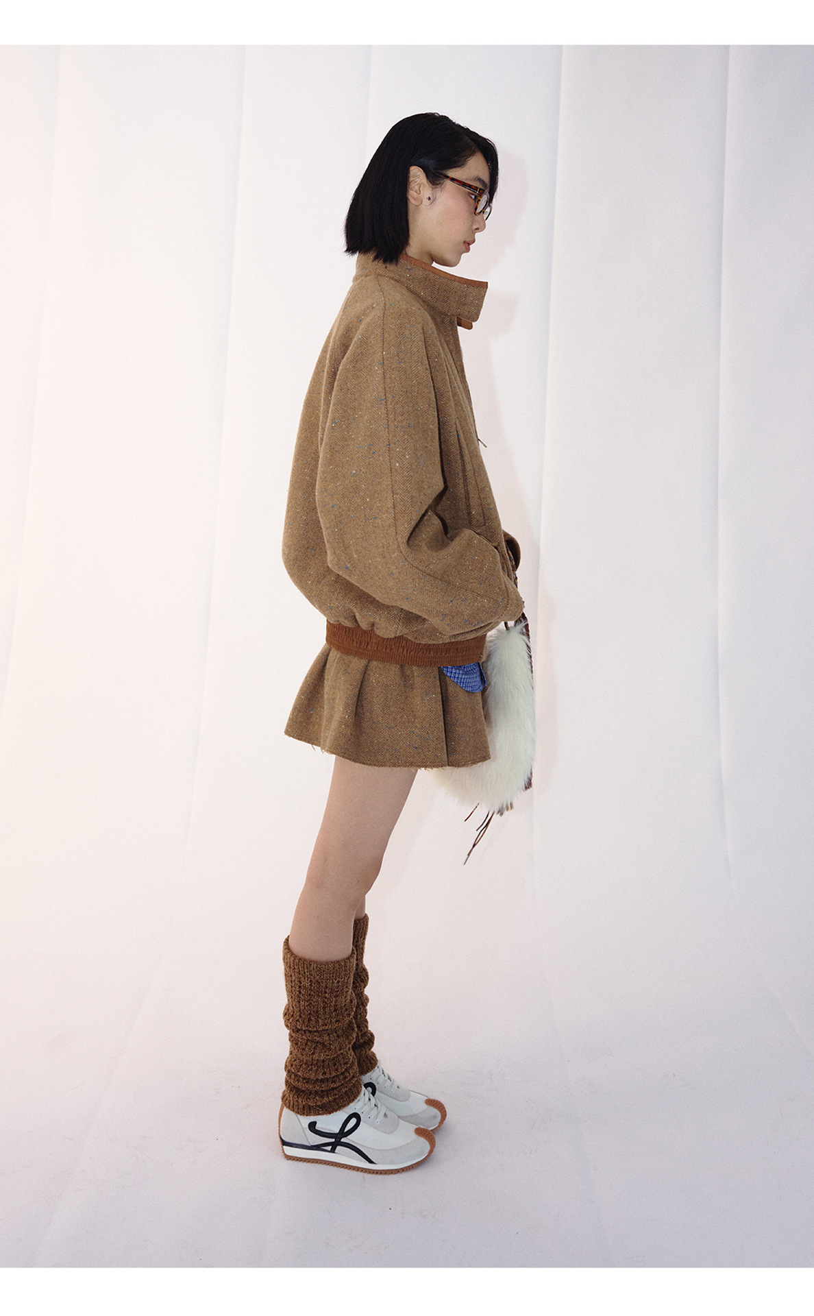[시간] 뉴 스웨이드 대조 올 울 레트로 재킷 V7893