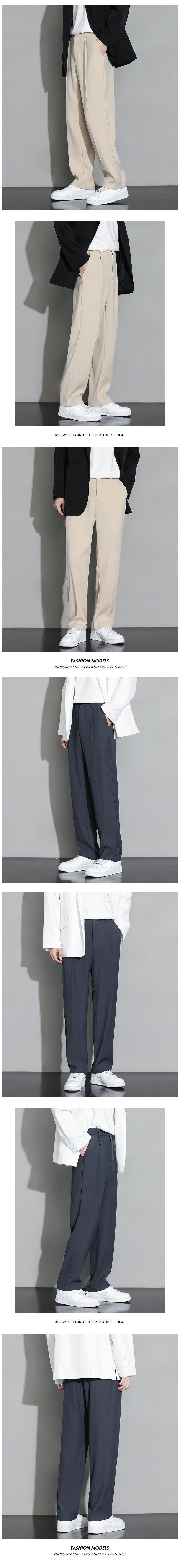 2024 새로운 아이스 실크 작은 바지 느슨한 스트레이트 튜브 청소년 화이트 칼라 라이트 럭셔리 캐주얼 바지 남성용 편안한 바지스토어 가기