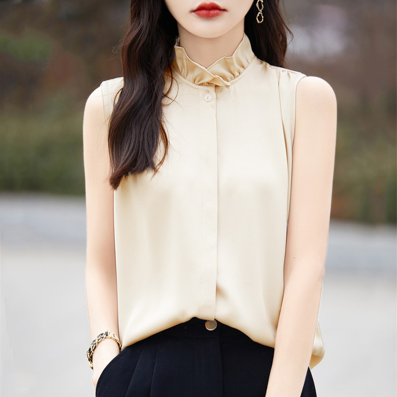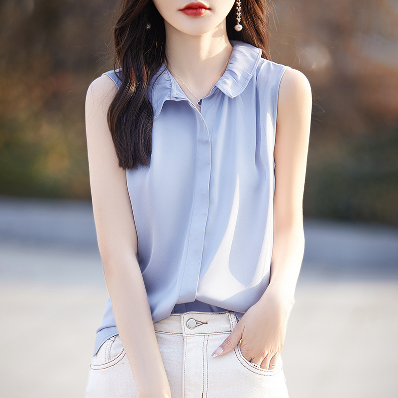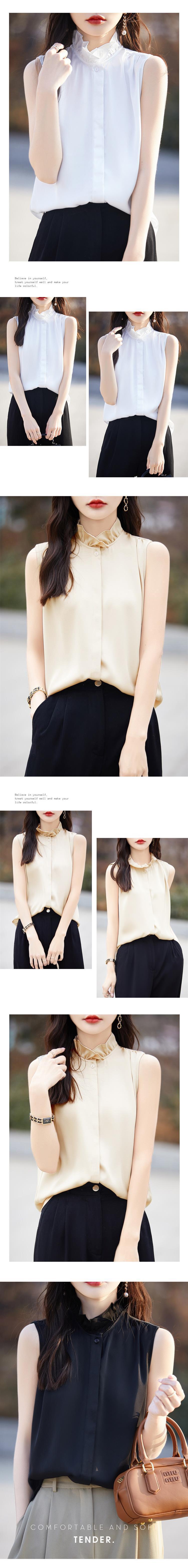 공장 도매 봄과 여름 레이스 칼라 쉬폰 셔츠 민소매 셔츠 여성 내복 비즈니스 기본 셔츠 탑스토어 가기