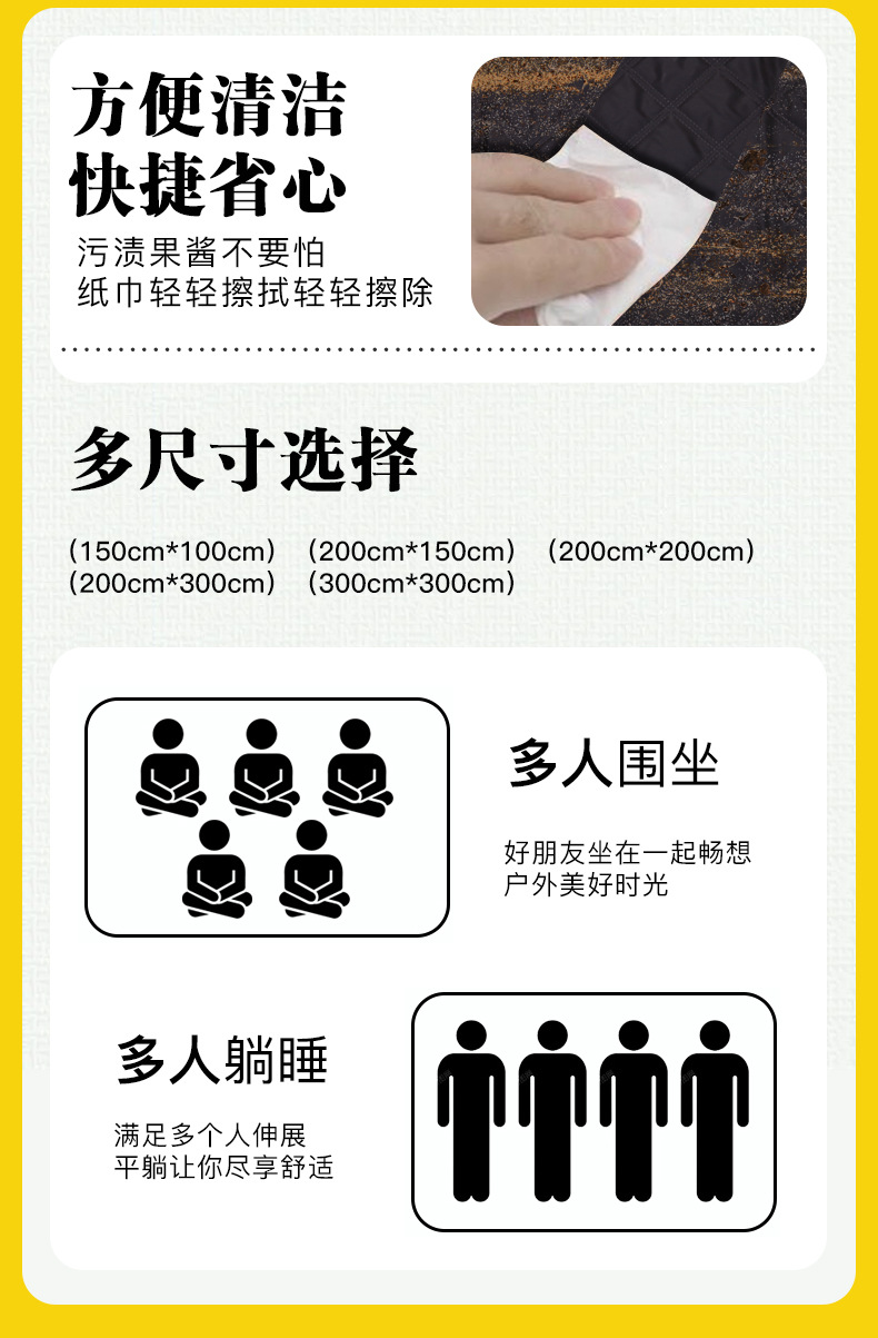 야외 3 대 1 비행 체스 게임 방습 피크닉 매트 텐트 캠핑 피크닉 천 초음파 방수 매트
