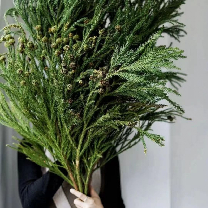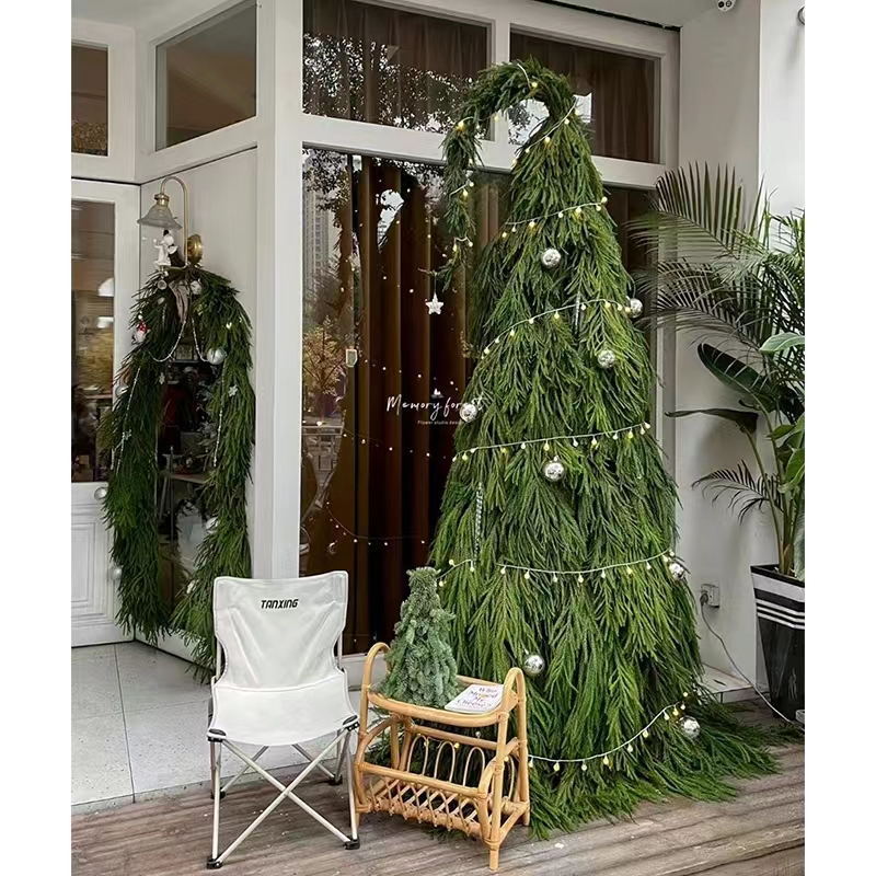 Cryptomeria 신선한 소나무 가지 화환 크리스마스 트리 장식 축제 거실 전시실 베이스 스트레이트 헤어