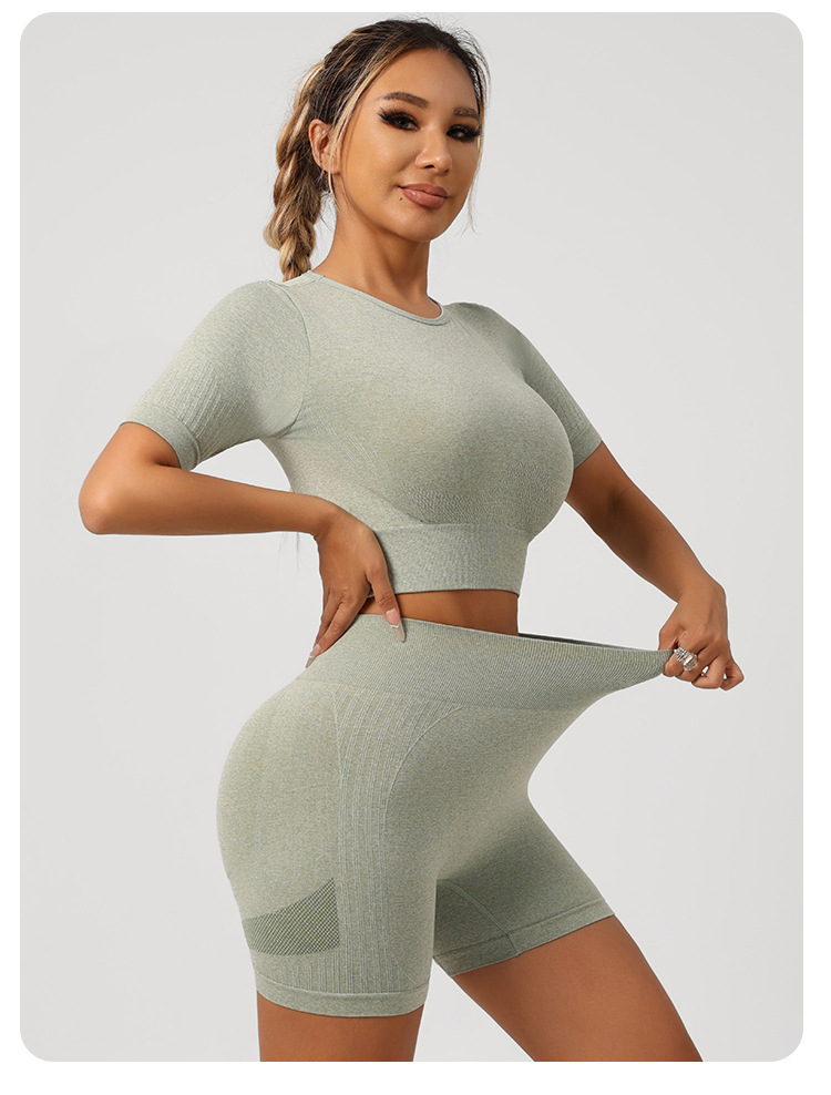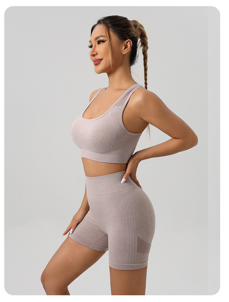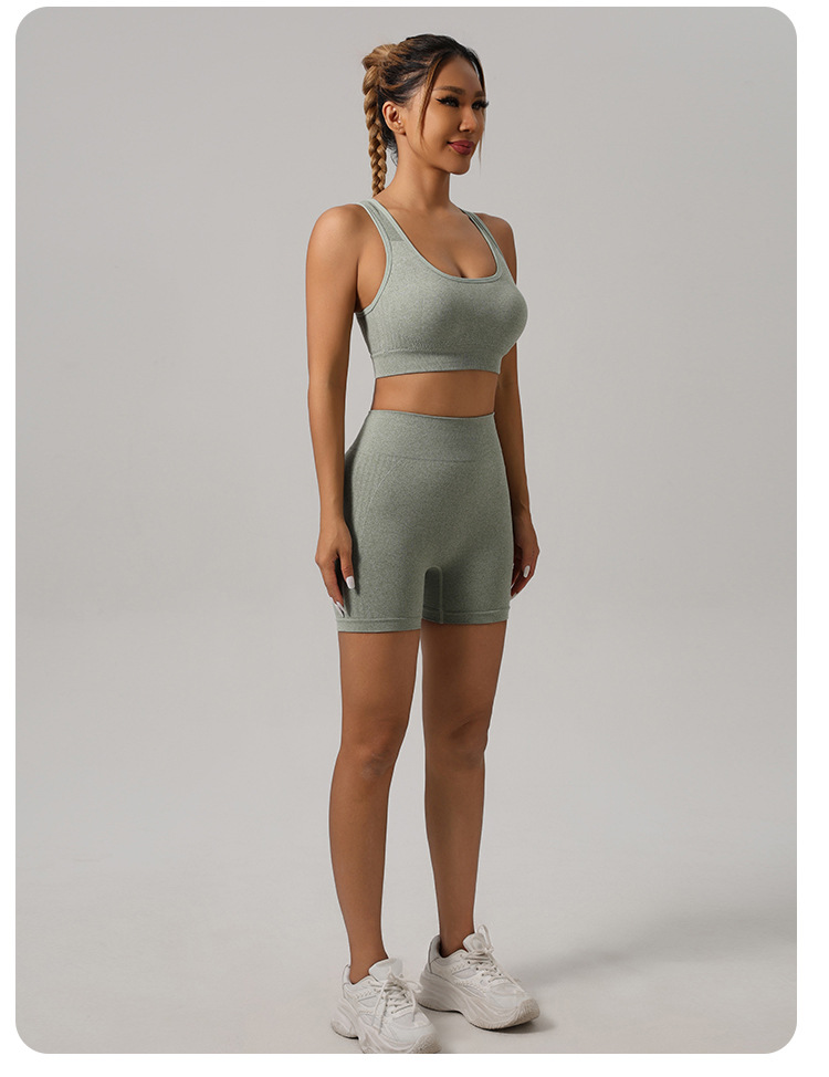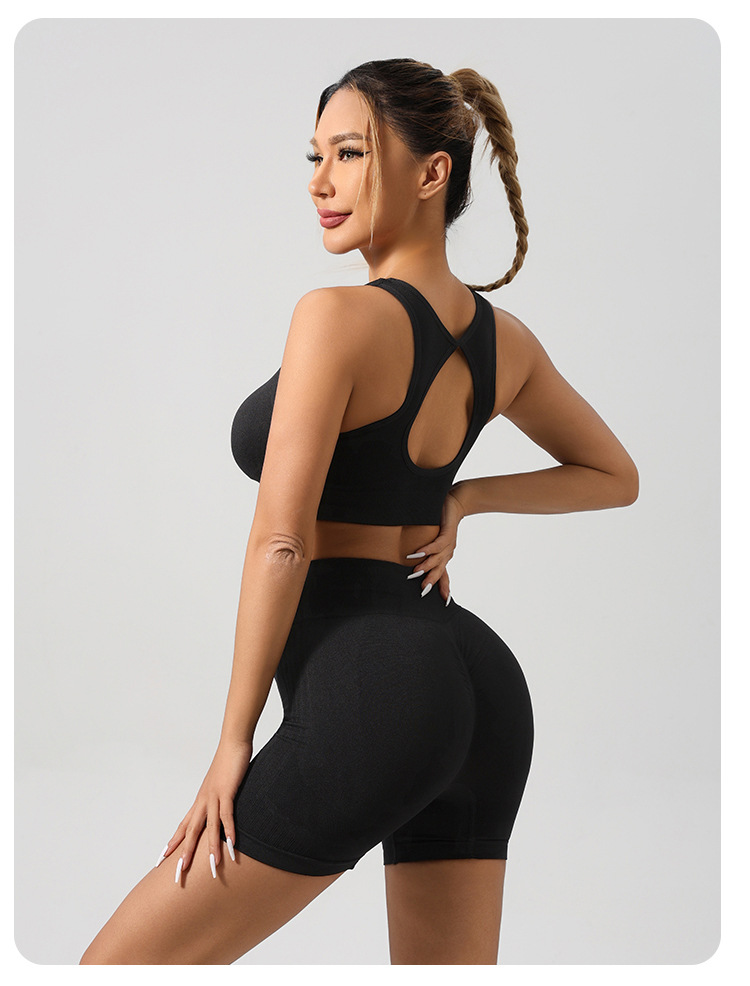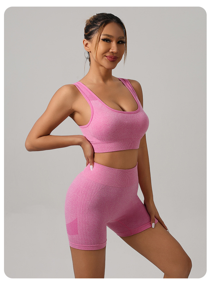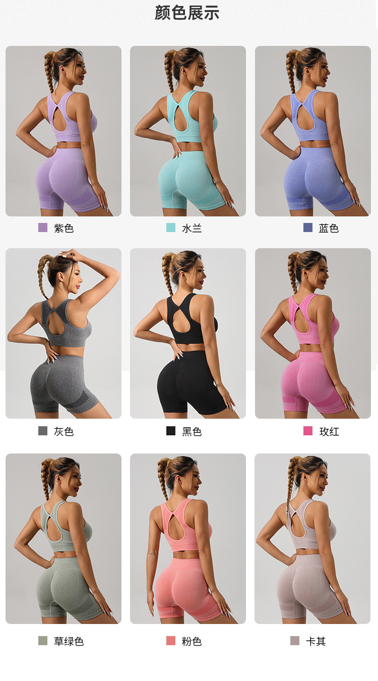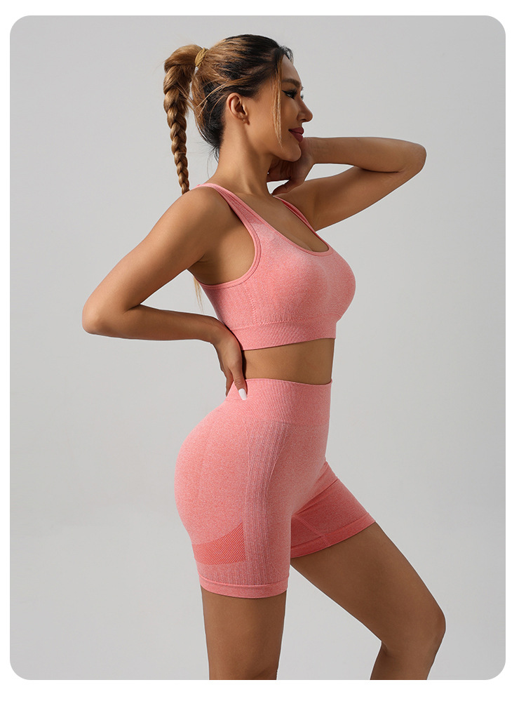 국경 간 전자 상거래 요가 의류 세트 도매 스포츠 조끼 속옷 높은 허리 바지 복숭아 엉덩이 피트니스 요가 반바지