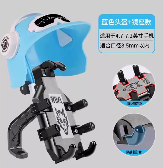 • 파란색 헬멧 [백미러 모델] 여개의 발톱 잠금 장치✅충격 방지 및 흔들림 방지