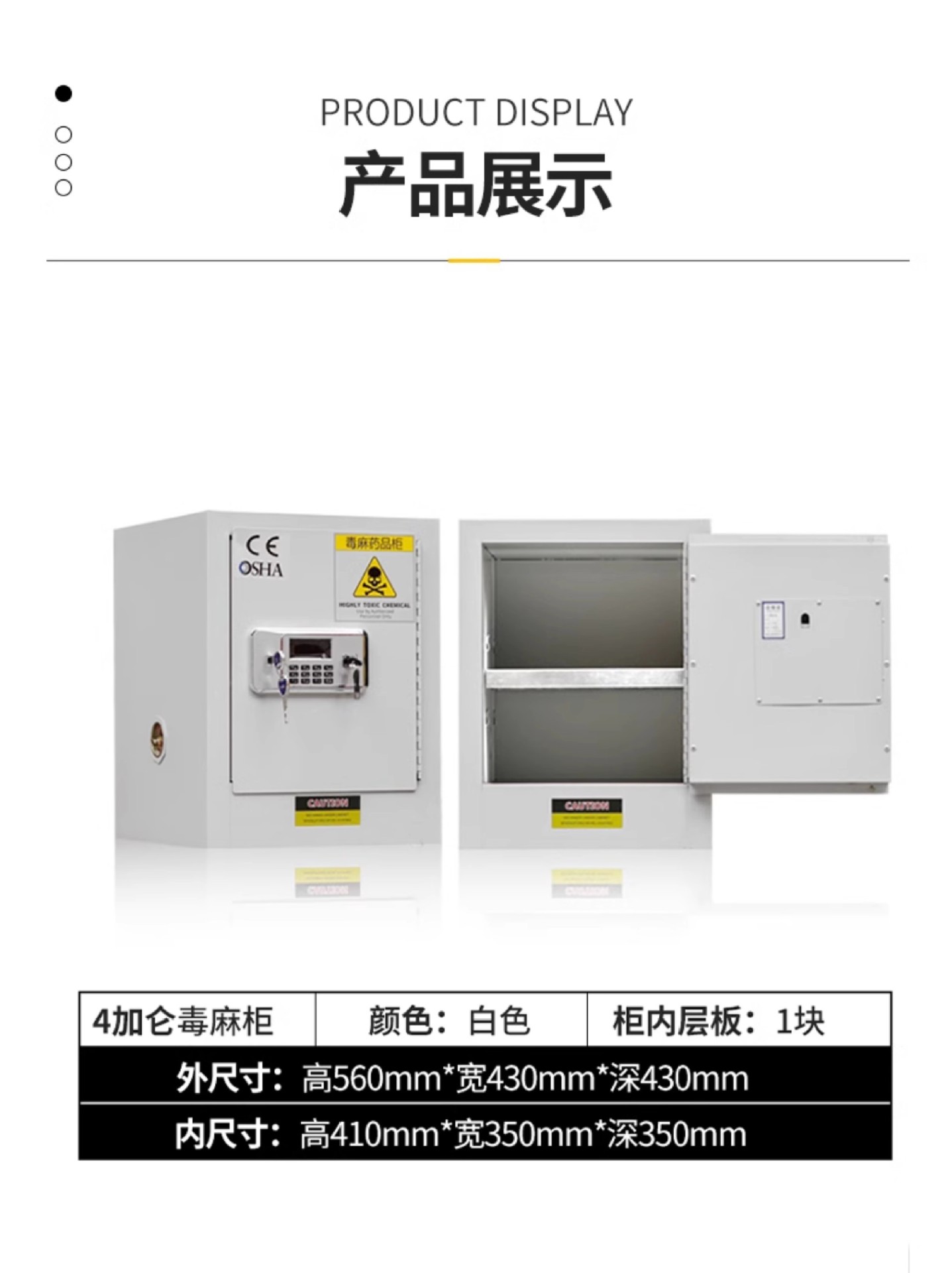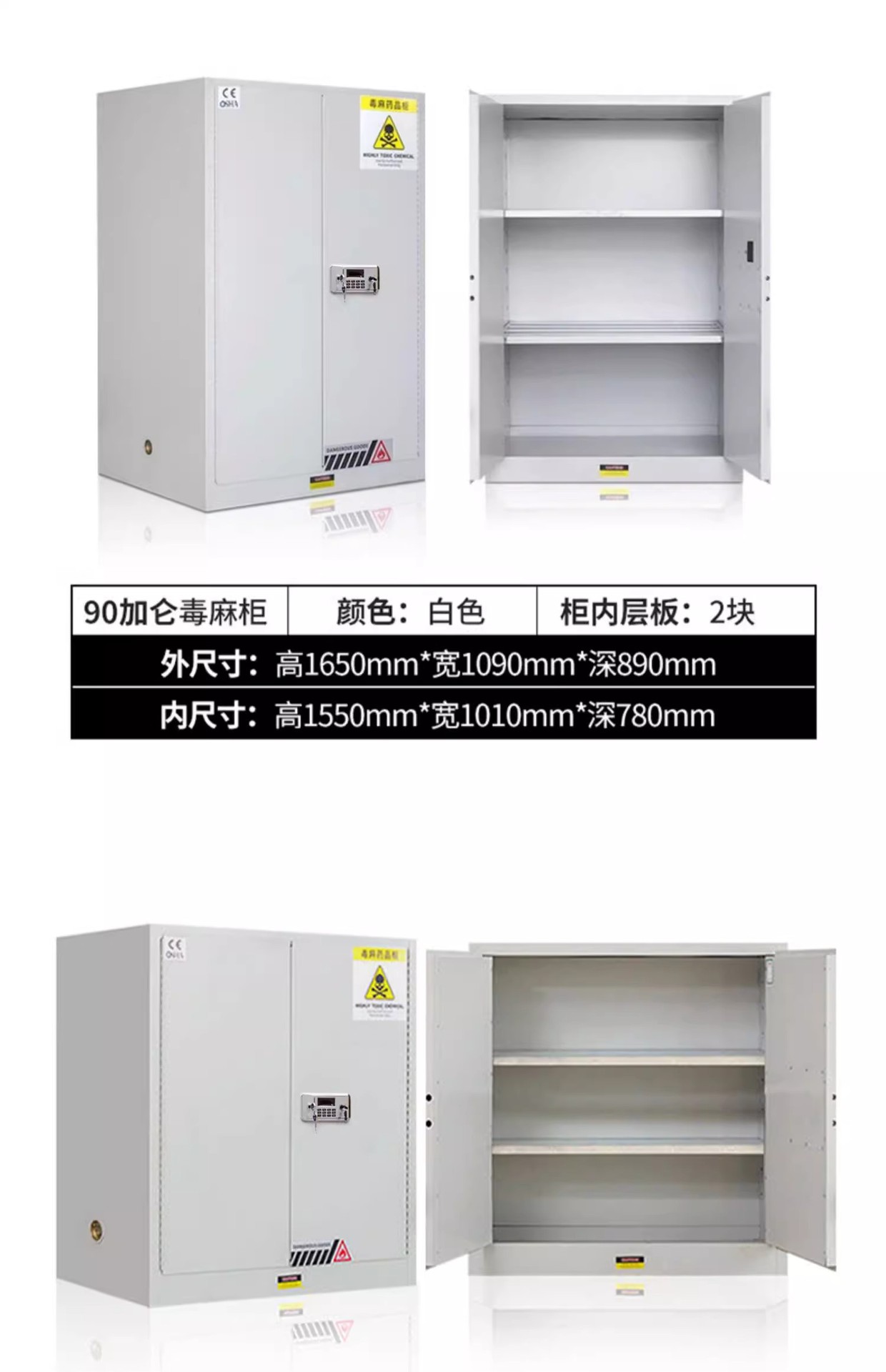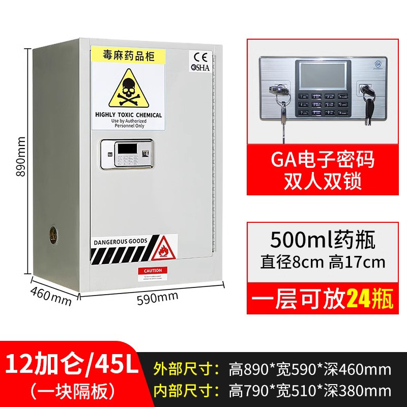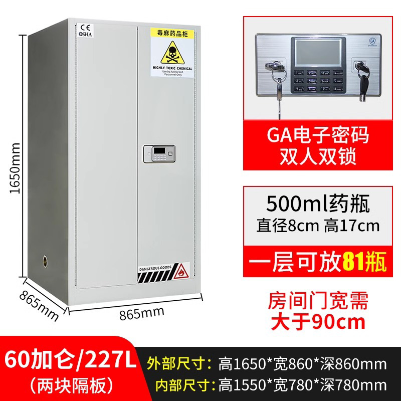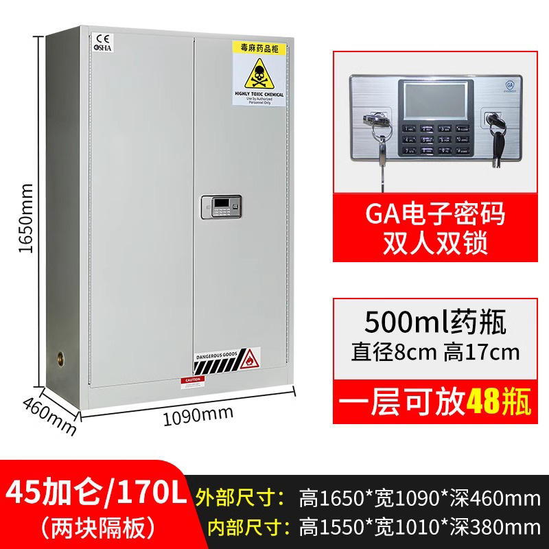 독성 화학 실험실 이중 이중 잠금 시약 내각 병원 유독 대마 캐비닛 약물 안전스토어 가기