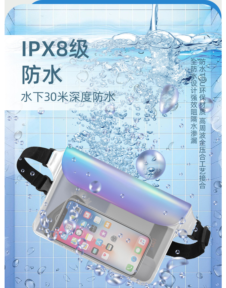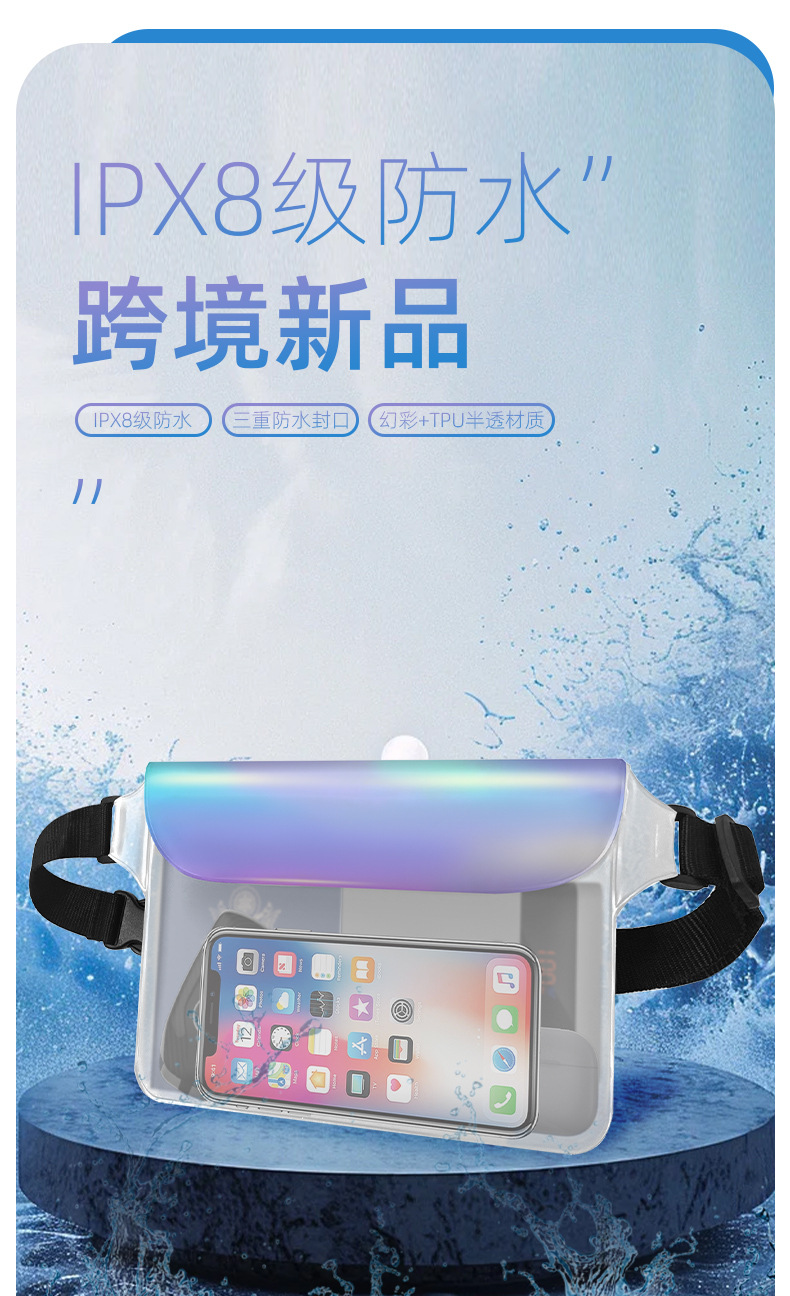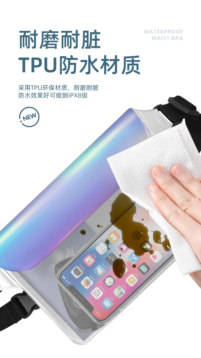공장 직접 새로운 야외 스포츠 TPU 매직 컬러 방수 메신저 가방 수영 다이빙 휴대 전화 가방 방수 허리 가방스토어 가기