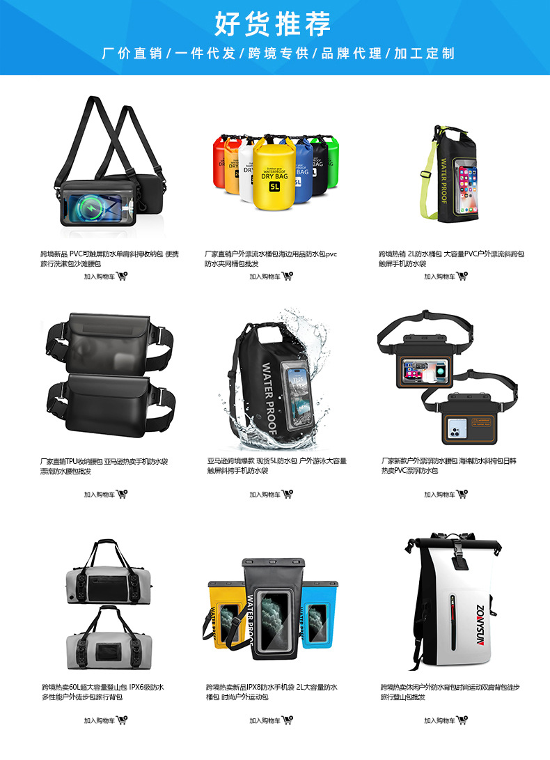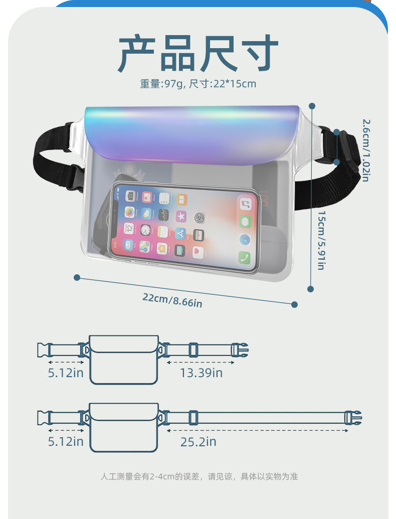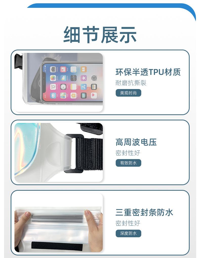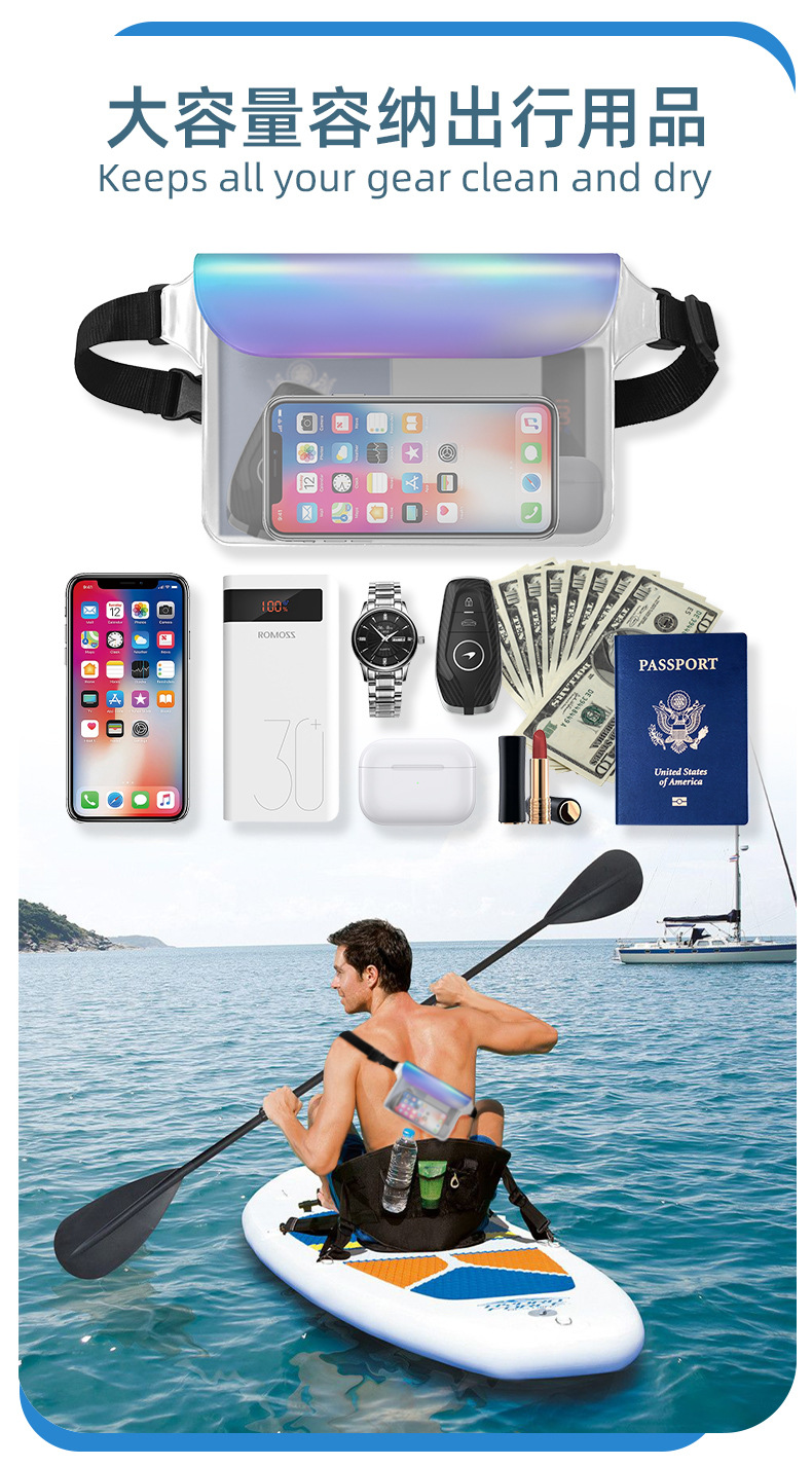 공장 직접 새로운 야외 스포츠 TPU 매직 컬러 방수 메신저 가방 수영 다이빙 휴대 전화 가방 방수 허리 가방스토어 가기