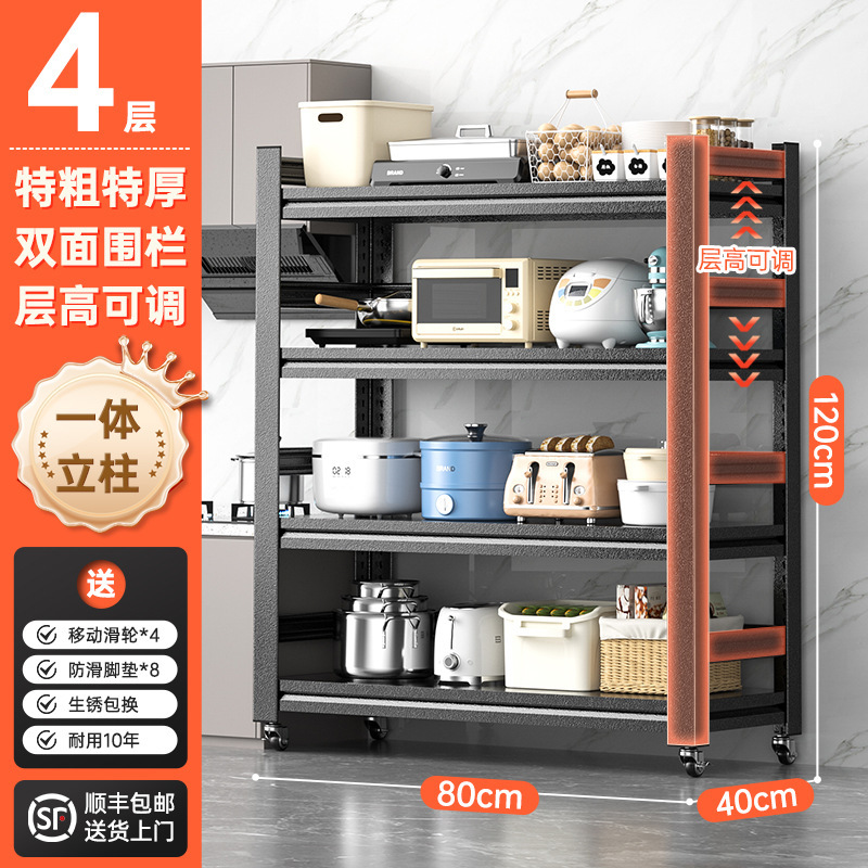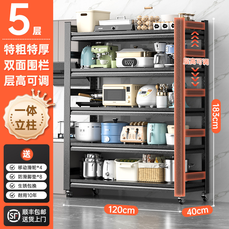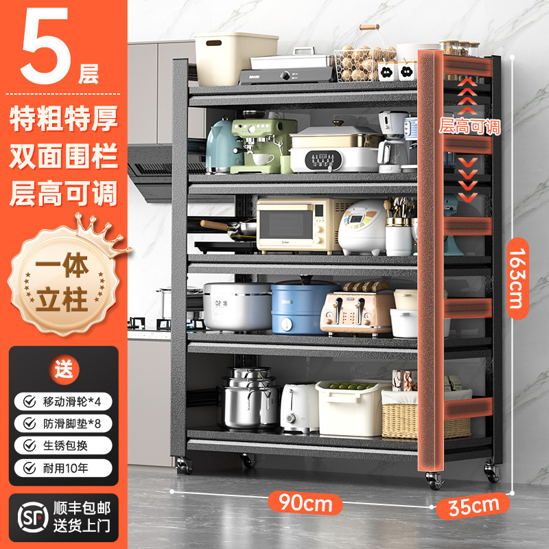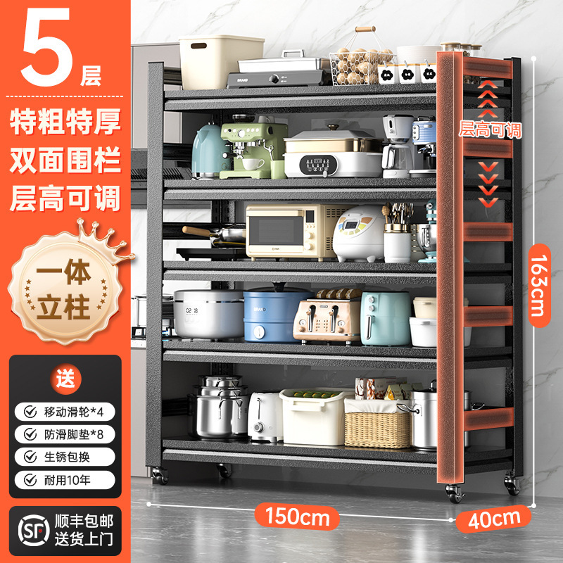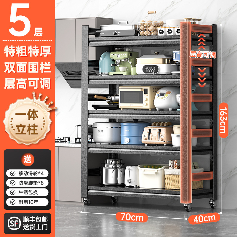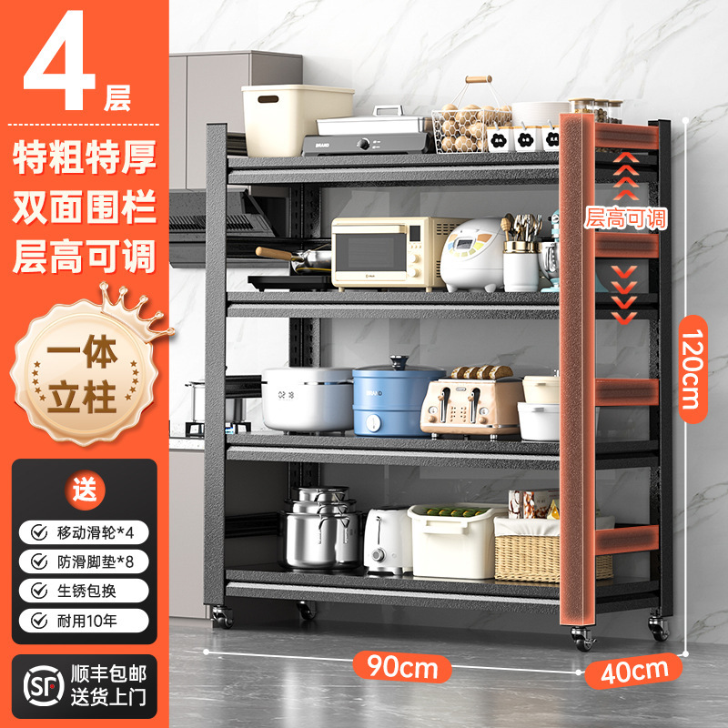 주방 보관 랙 다기능 바닥 다층 가정용 그릇 랙 포트 랙 전자 레인지 저장 선반 탄소 강철