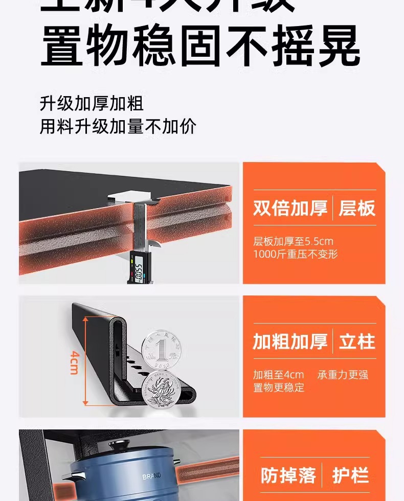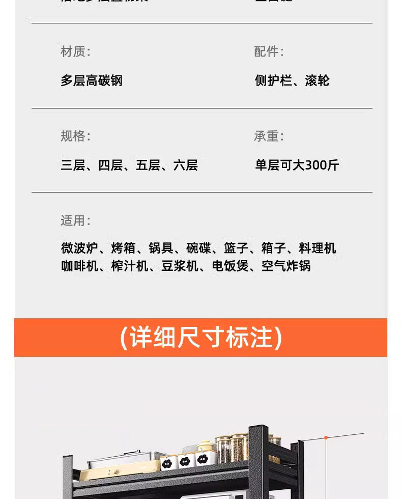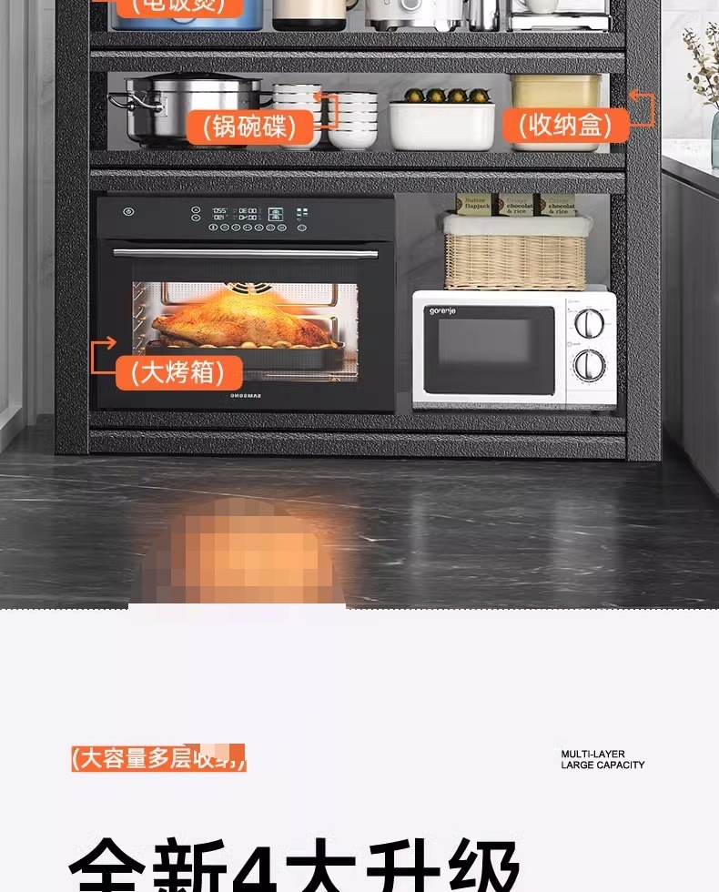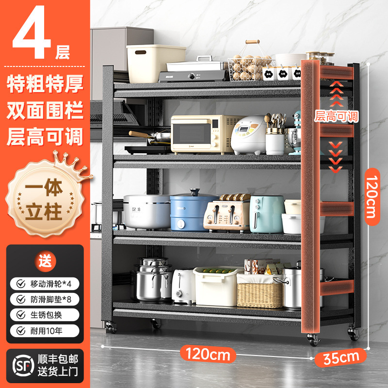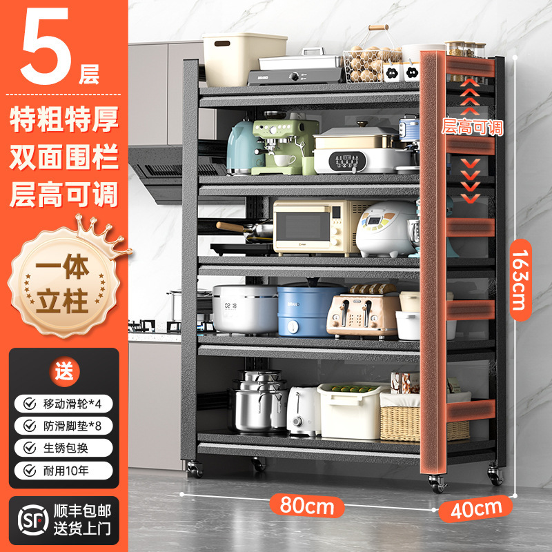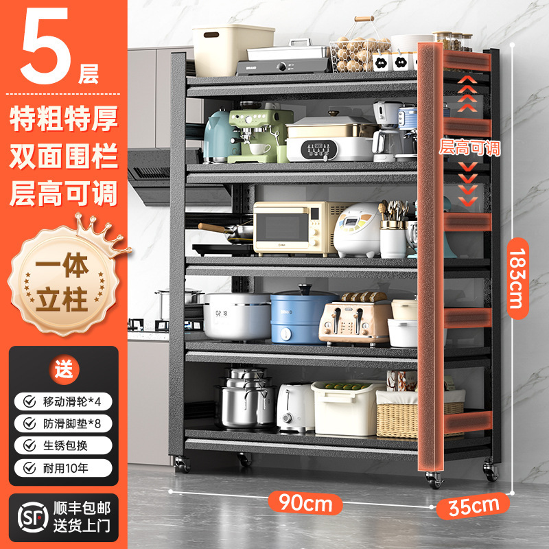 주방 보관 랙 다기능 바닥 다층 가정용 그릇 랙 포트 랙 전자 레인지 저장 선반 탄소 강철