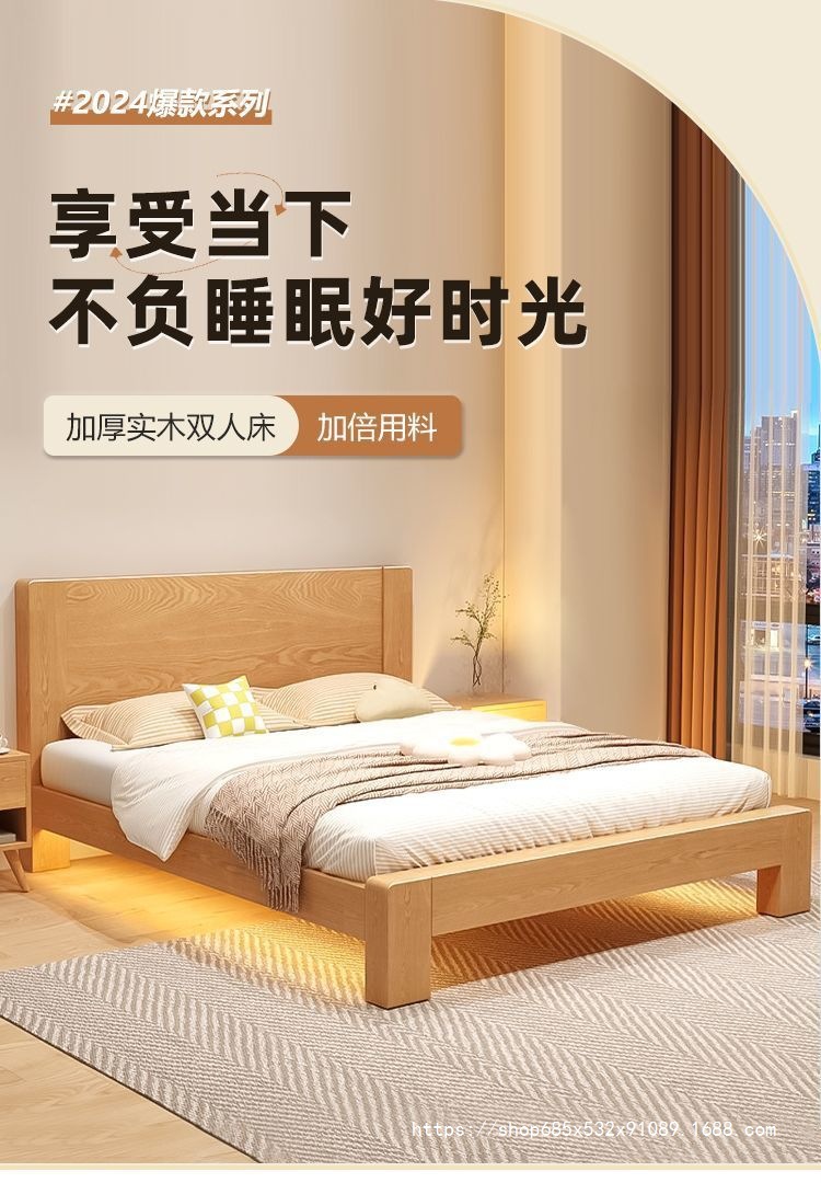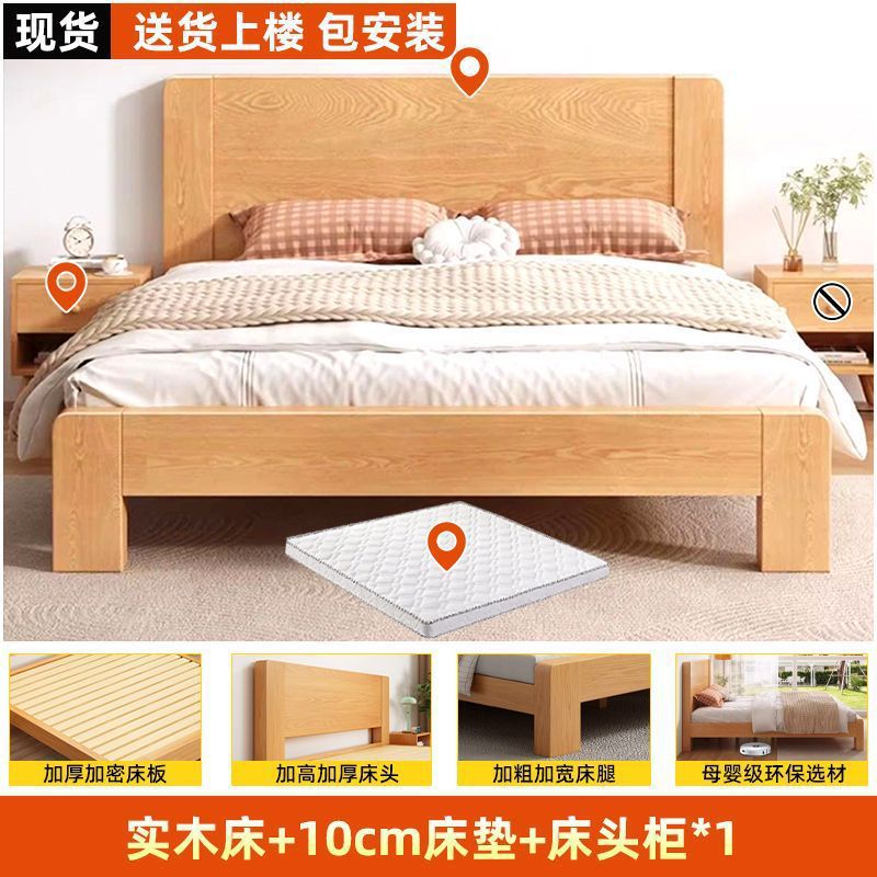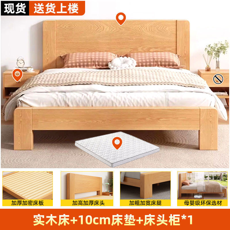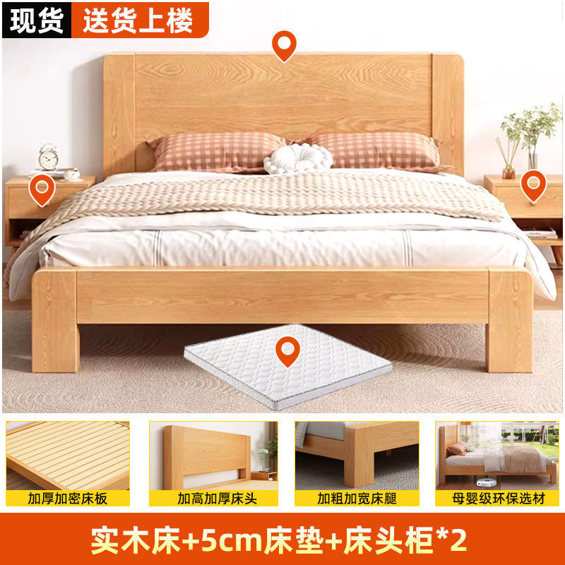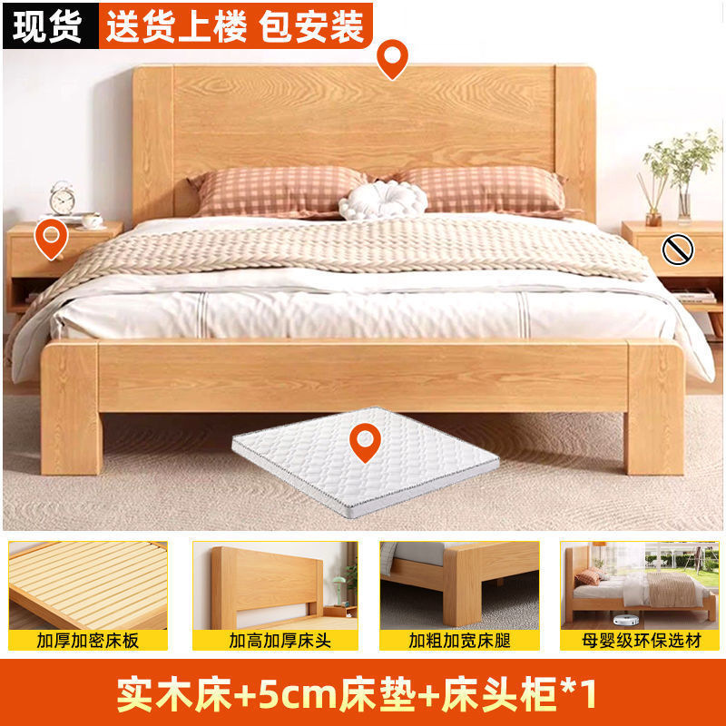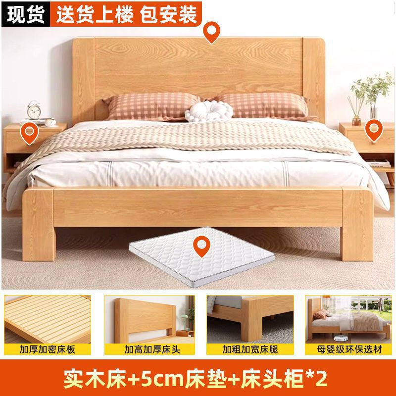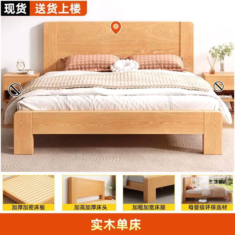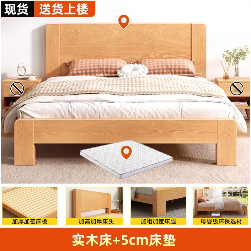 침대 단단한 나무 침대 더블 1.8x2m 마스터 침실 큰 침대 홈 1.5 m 작은 아파트 임대 방 1.2m 싱글 침대 프레임스토어 가기