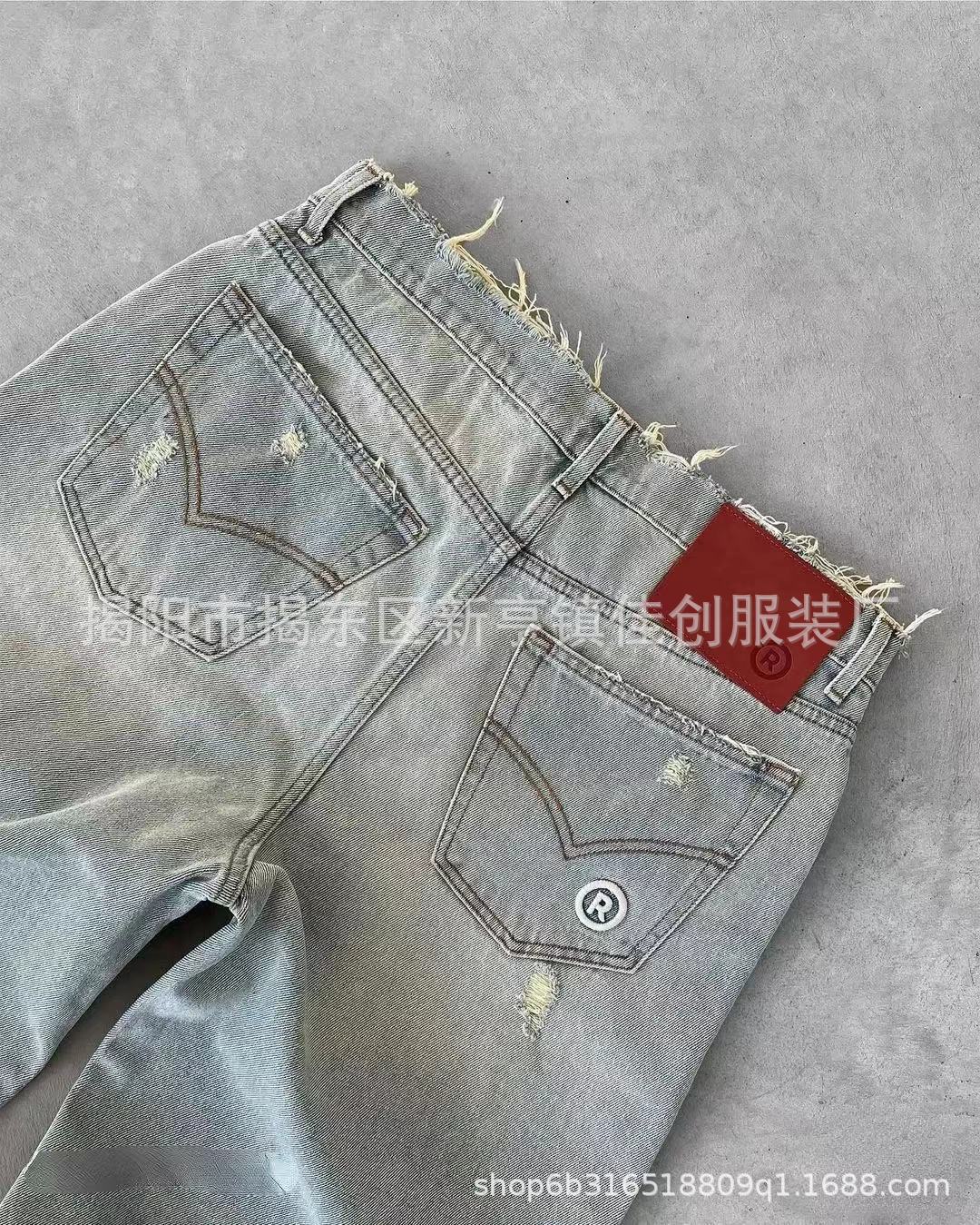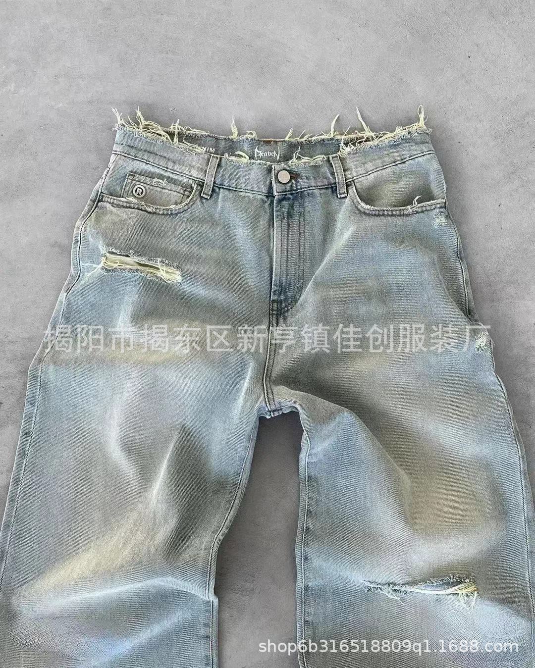 국경 간 공장 직접 유럽과 미국의 찢어진 청바지 하이 스트리트 패션 브랜드 오래 된 스트레이트 수 놓은 남성 데님 바지스토어 가기