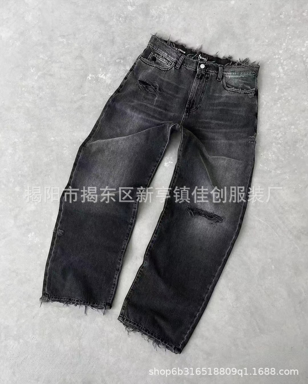 跨境厂家直销欧美破洞牛仔裤高街潮牌做旧直筒刺绣男士牛仔长裤