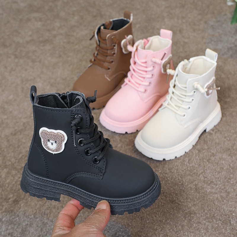 여자 마틴 부츠 2023 가을 겨울 새로운 어린이 발목 부츠 영국 스타일 어린이 가죽 부츠 기모 여자 2 면 부츠