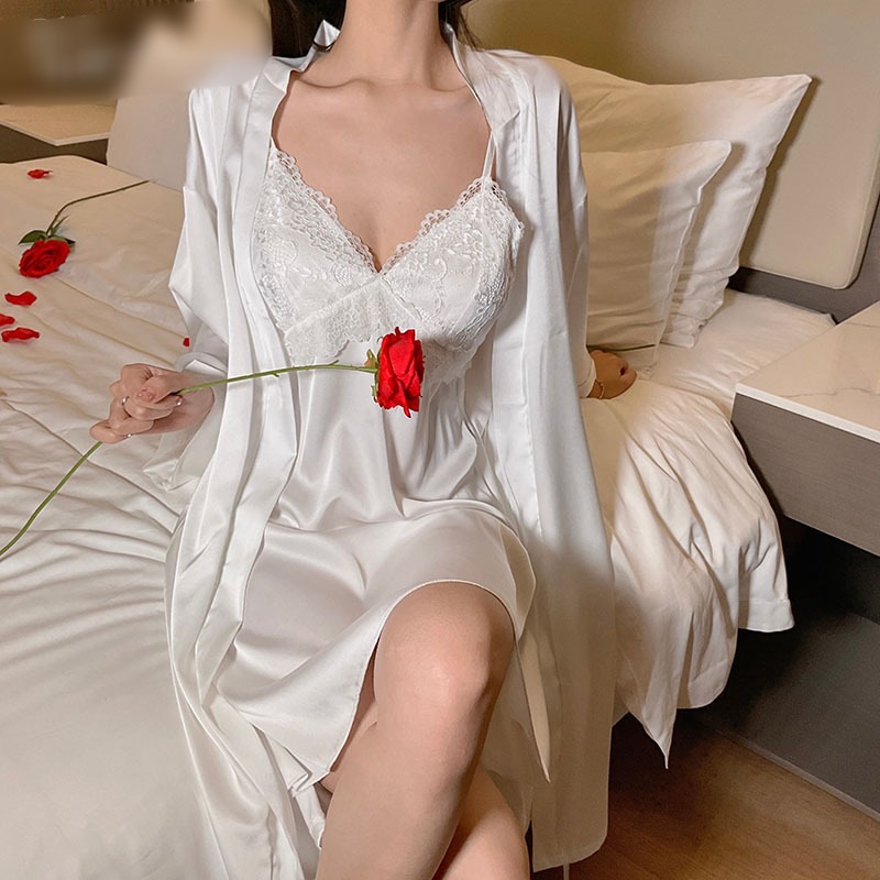 섹시한 레이스 새틴 나이트 드레스 백리스 레이스 업 슬링 파자마 딥 V 홈 파자마 세트스토어 가기