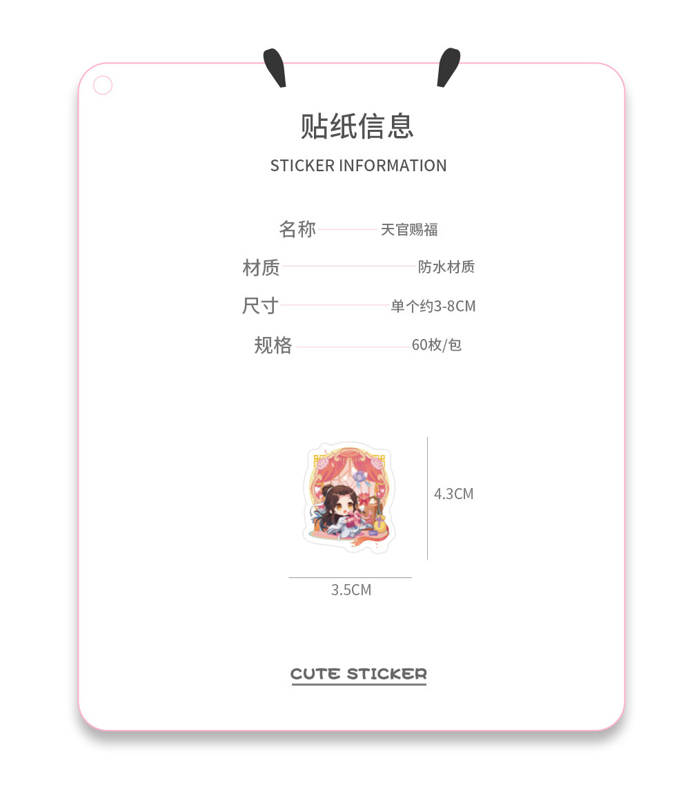 60 Tianguan 축복받은 애니메이션 스티커 Q Edition Tanmei 장식 노트북 문구 핸드북 소재 diy 스티커 도매스토어 가기