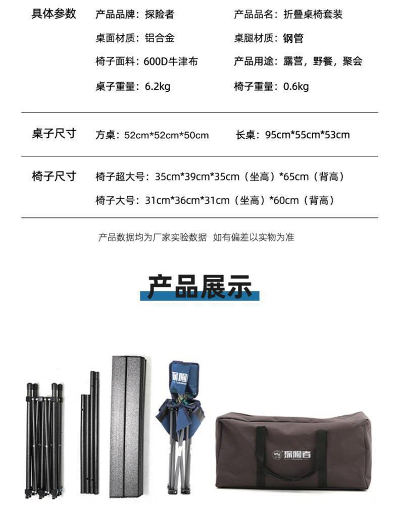 探险者户外桌椅折叠便携式露营装备用品铝合金野餐桌烧烤蛋卷桌子