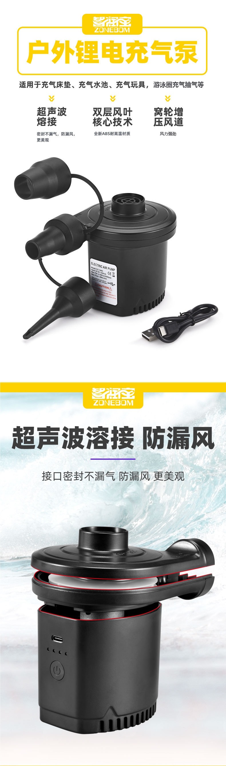 다기능 전력 저장 야외 캠핑 공기 침대 수영장 수영 반지 휴대용 전기 공기 펌프 펌프스토어 가기