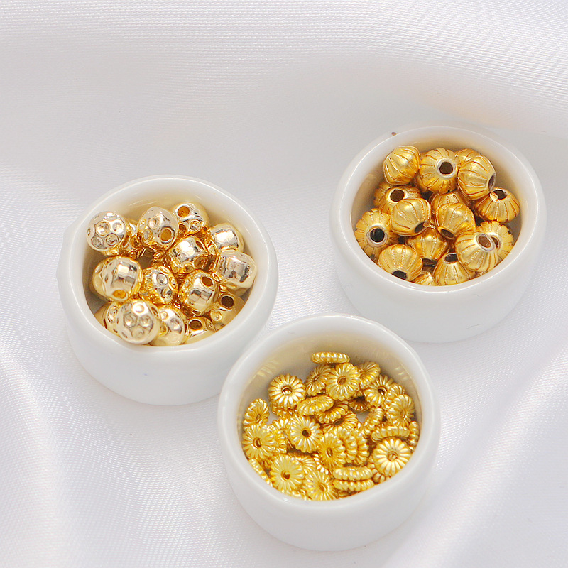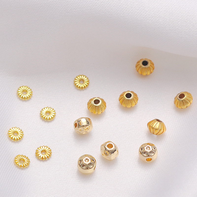 14K包金保色哑金齿轮飞碟珠皱纹圆珠项链手链隔珠diy饰品瓜纹扁片