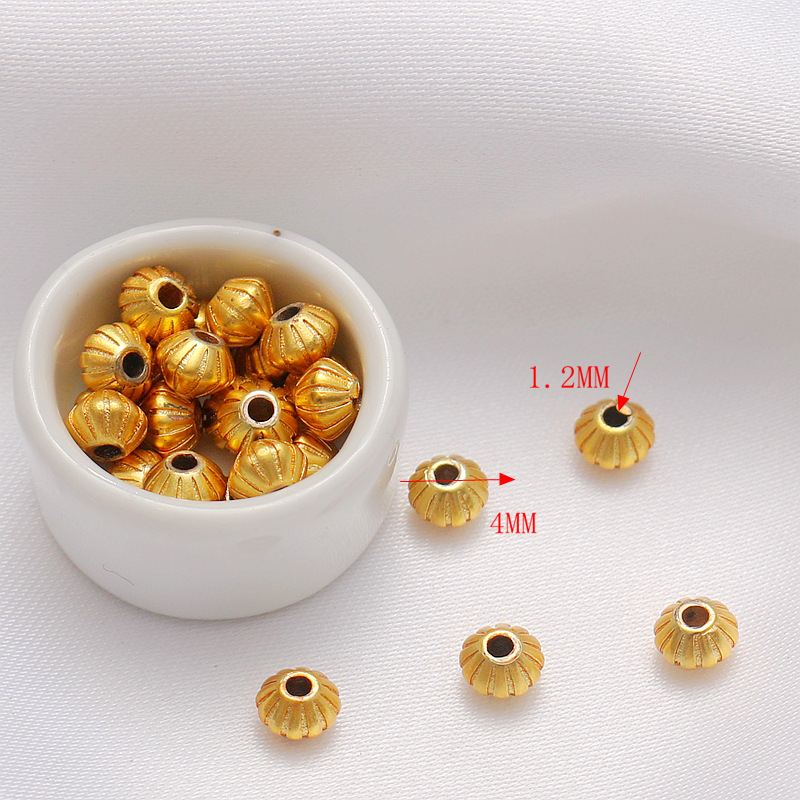 14K 골드 컬러 유지 매트 골드 기어 ufo 비즈 주름 라운드 구슬 목걸이 팔찌 구슬 diy 보석 멜론 패턴 플랫 피스스토어 가기