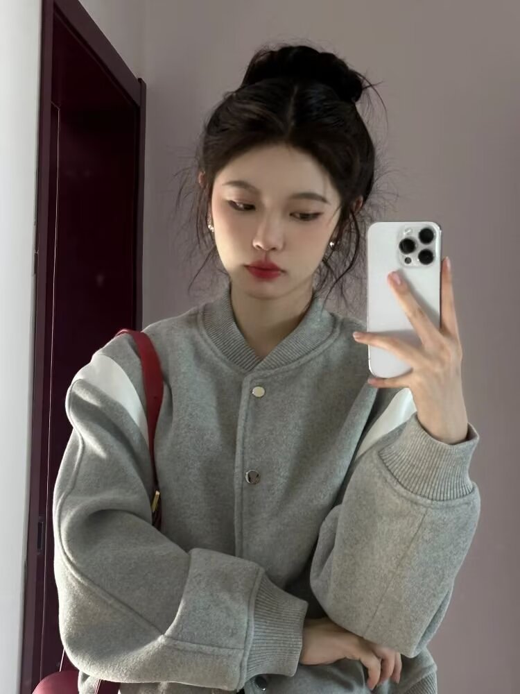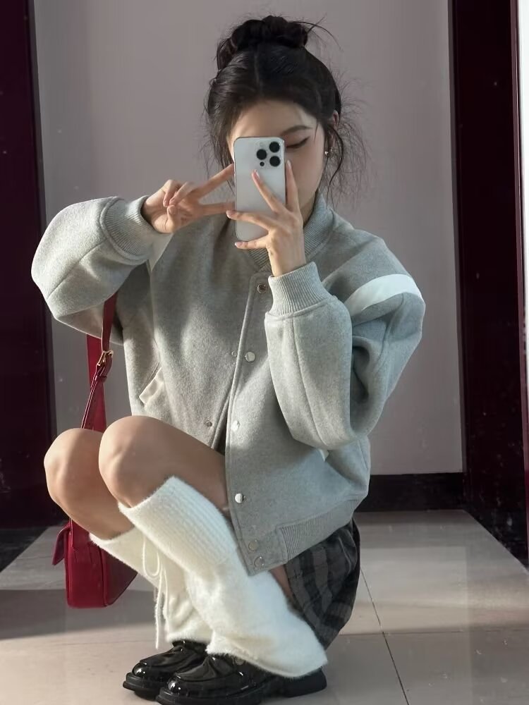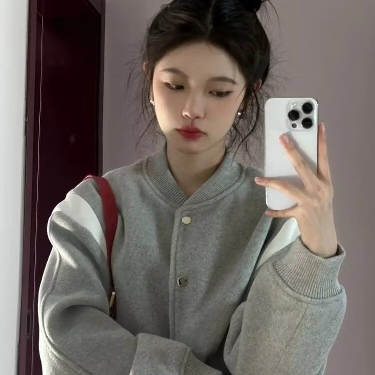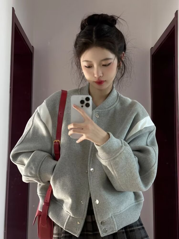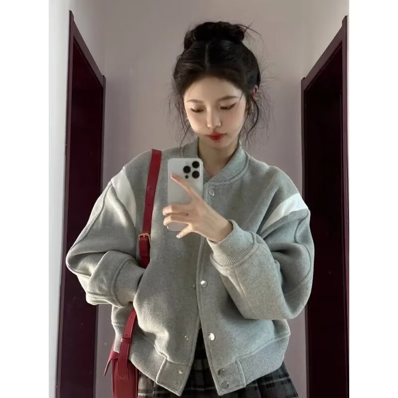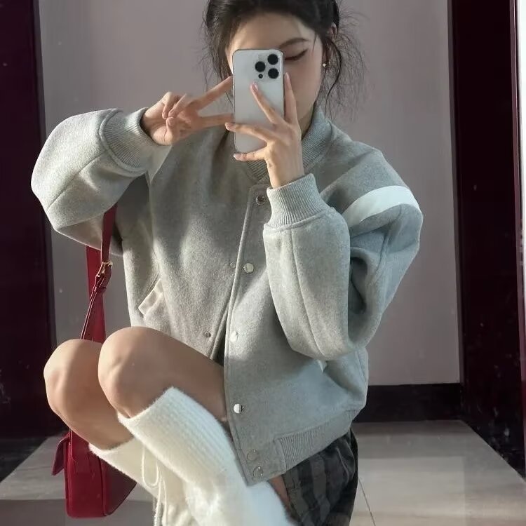 작은 코트 여자 야구 세트 가을과 겨울 프랑스 틈새 디자인 센스 기모 재킷 최고 인터넷 인기 Ins 트렌디스토어 가기