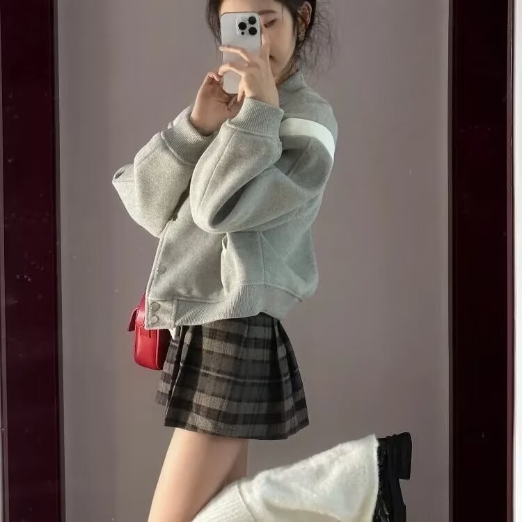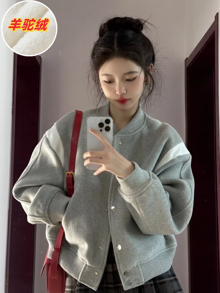 작은 코트 여자 야구 세트 가을과 겨울 프랑스 틈새 디자인 센스 기모 재킷 최고 인터넷 인기 Ins 트렌디