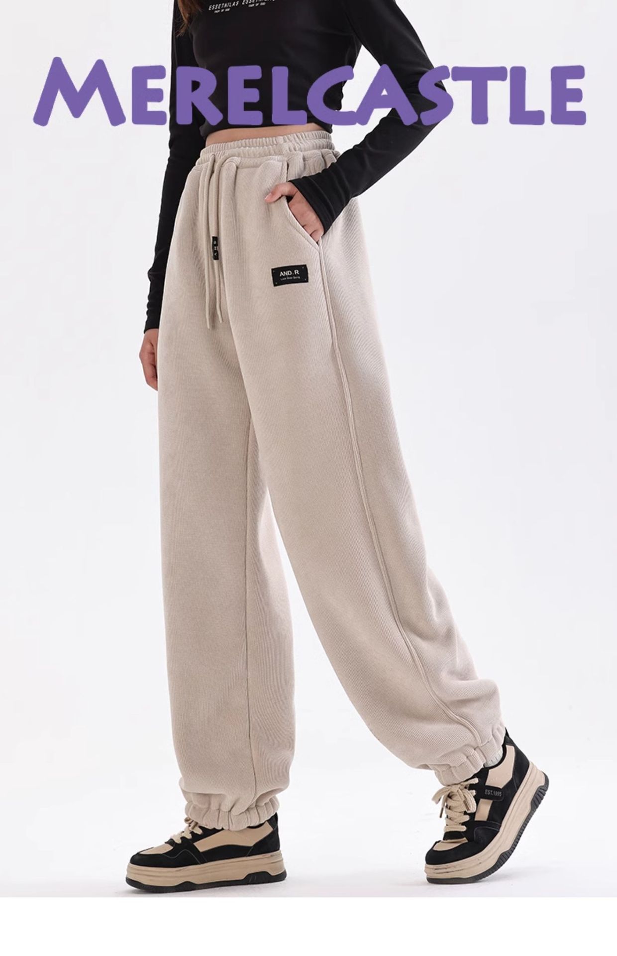 여자 기모 바지 가을과 겨울 2024 새로운 중학교 학생 원피스 양털 두꺼운 여자 양털 운동복스토어 가기