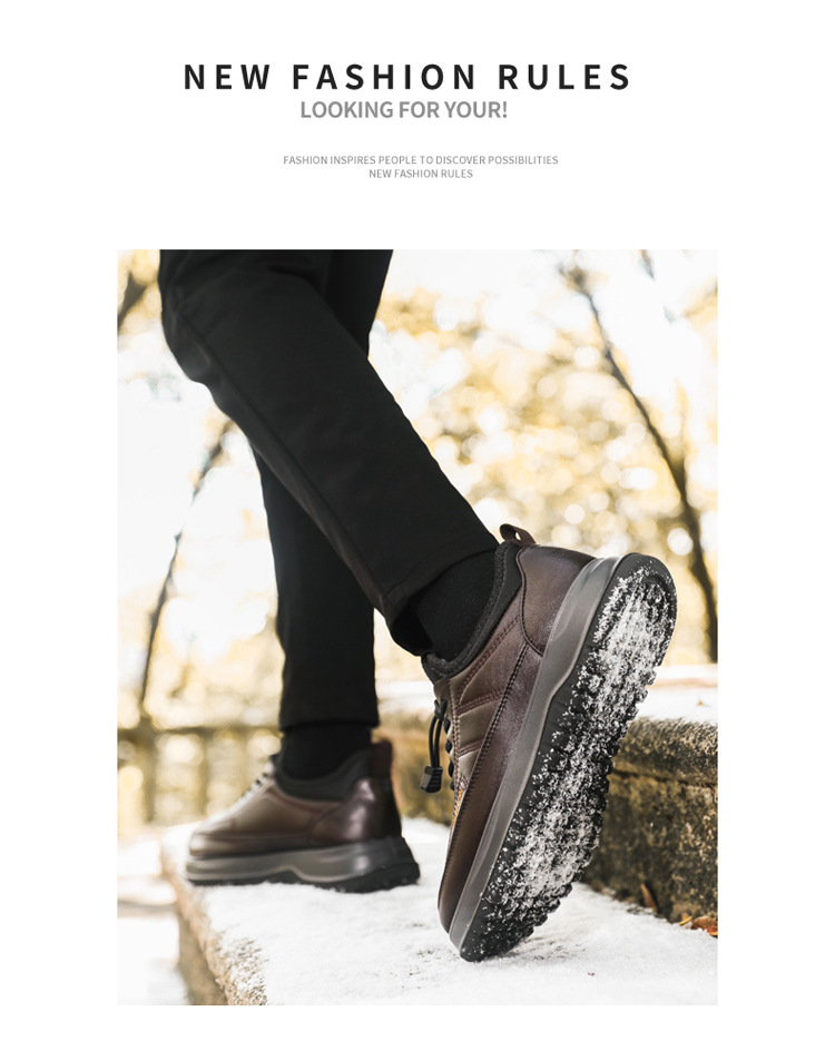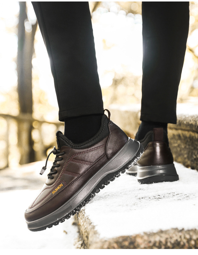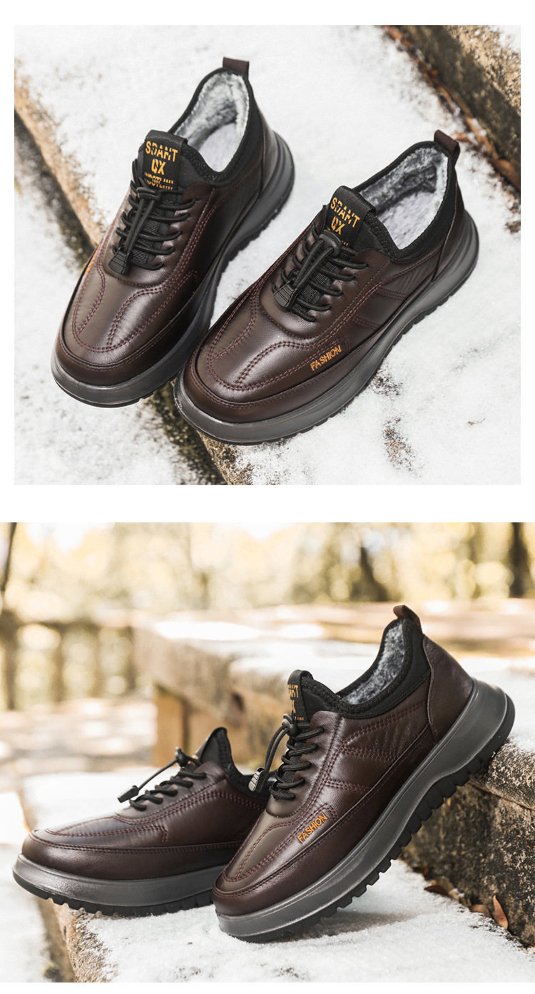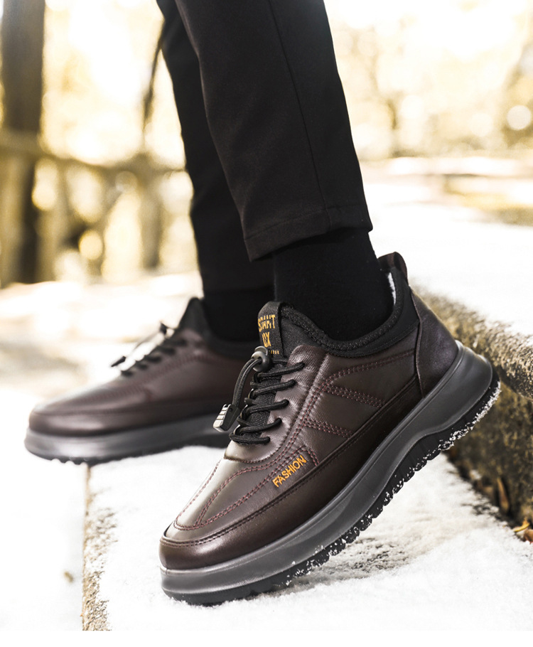 겨울 새 남성 기모 따뜻한 코튼 신발 중년 및 노인 가죽 방수 캐주얼 신발 경량 두꺼운 밑창 스노우 부츠