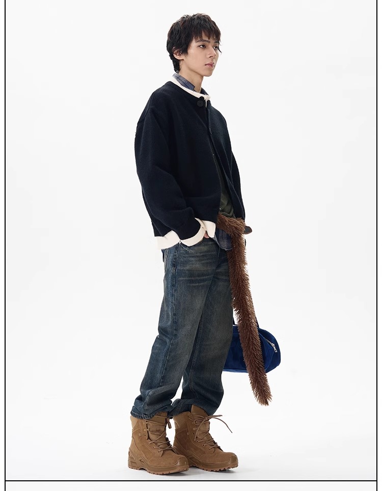 일본 레트로 하이 엔드 페이크 투피스 스티칭 스태킹 스웨터 남자 클렌핏 니트 카디건 게으른 재킷 트렌디스토어 가기