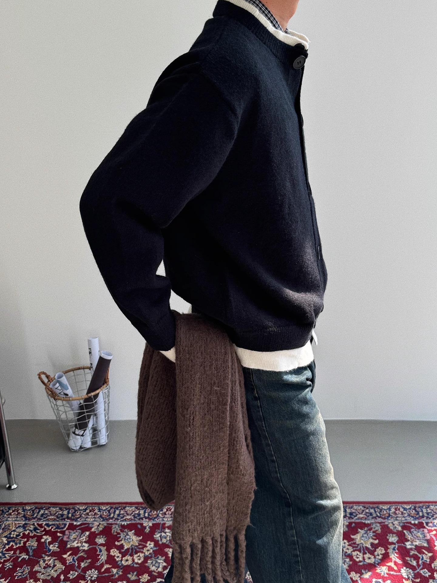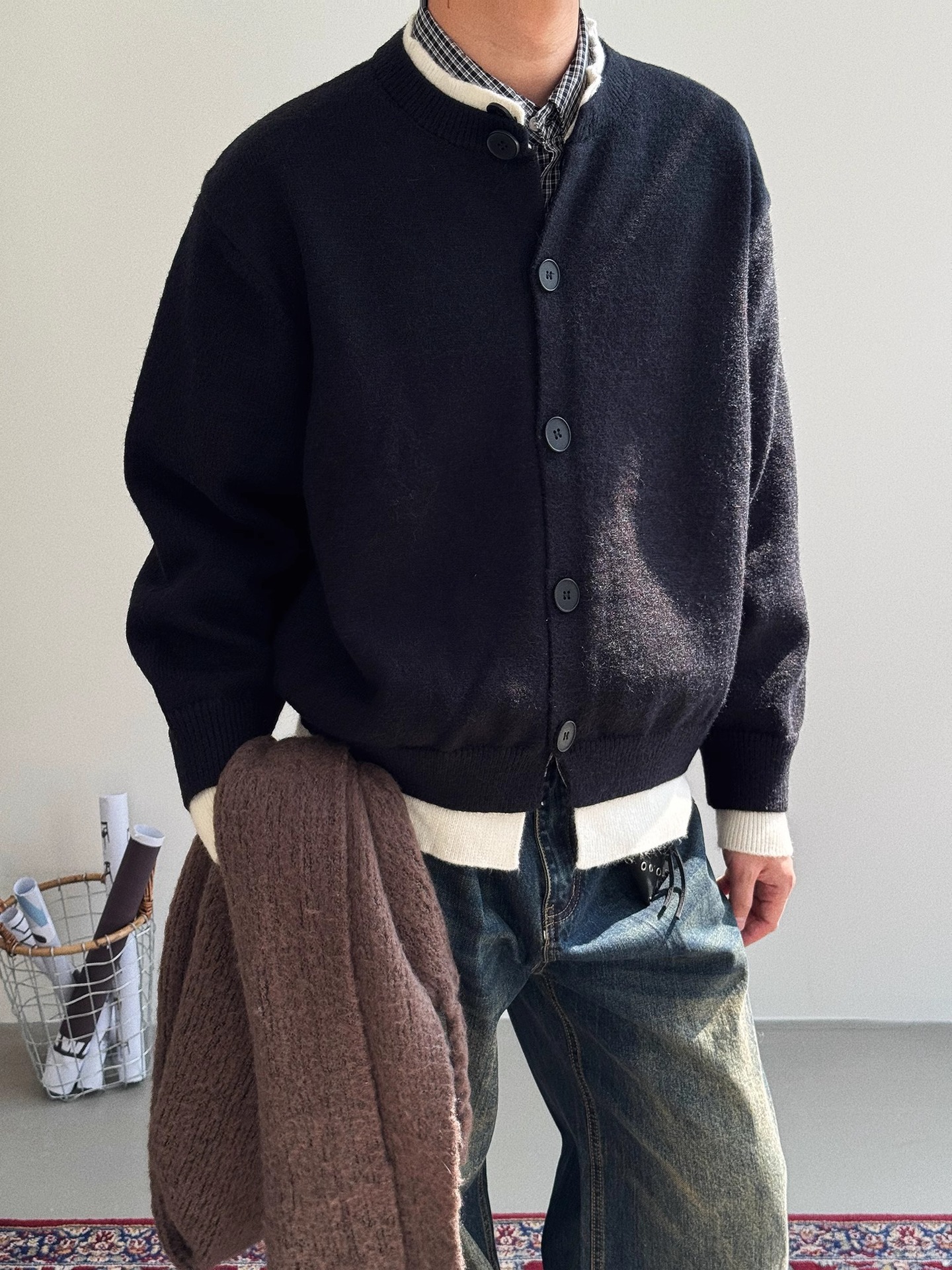 가을과 겨울 새로운 가짜 투피스 스웨터 남자 아메리칸 스타일 레트로 클렌핏 루즈 캐주얼 스타일 카디건 스웨터