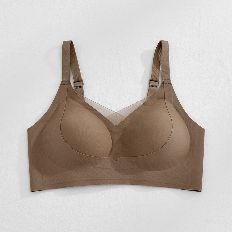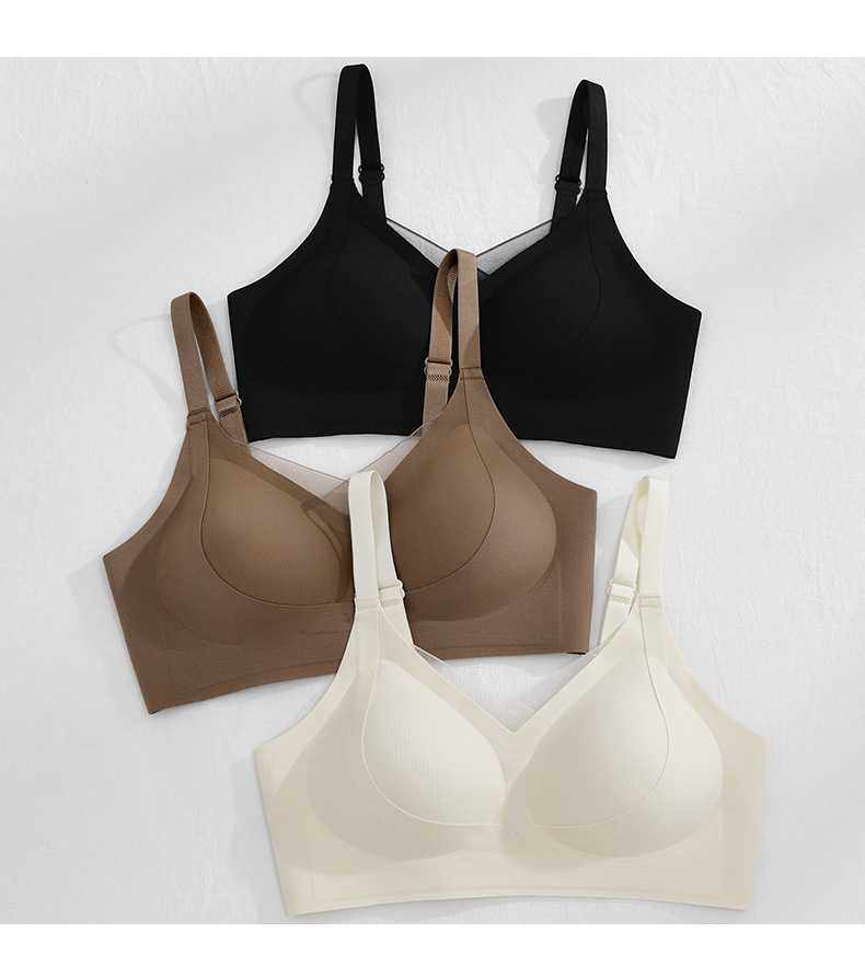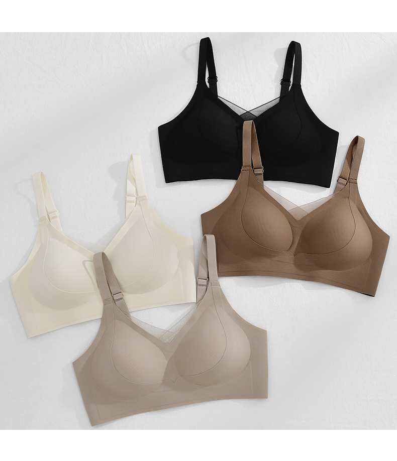 봄 새로운 얼음 실크 원활한 리프팅 속옷 여성 브래지어 작은 가슴은 빈 컵 브래지어없는 강철 반지 얇은 여름 모여