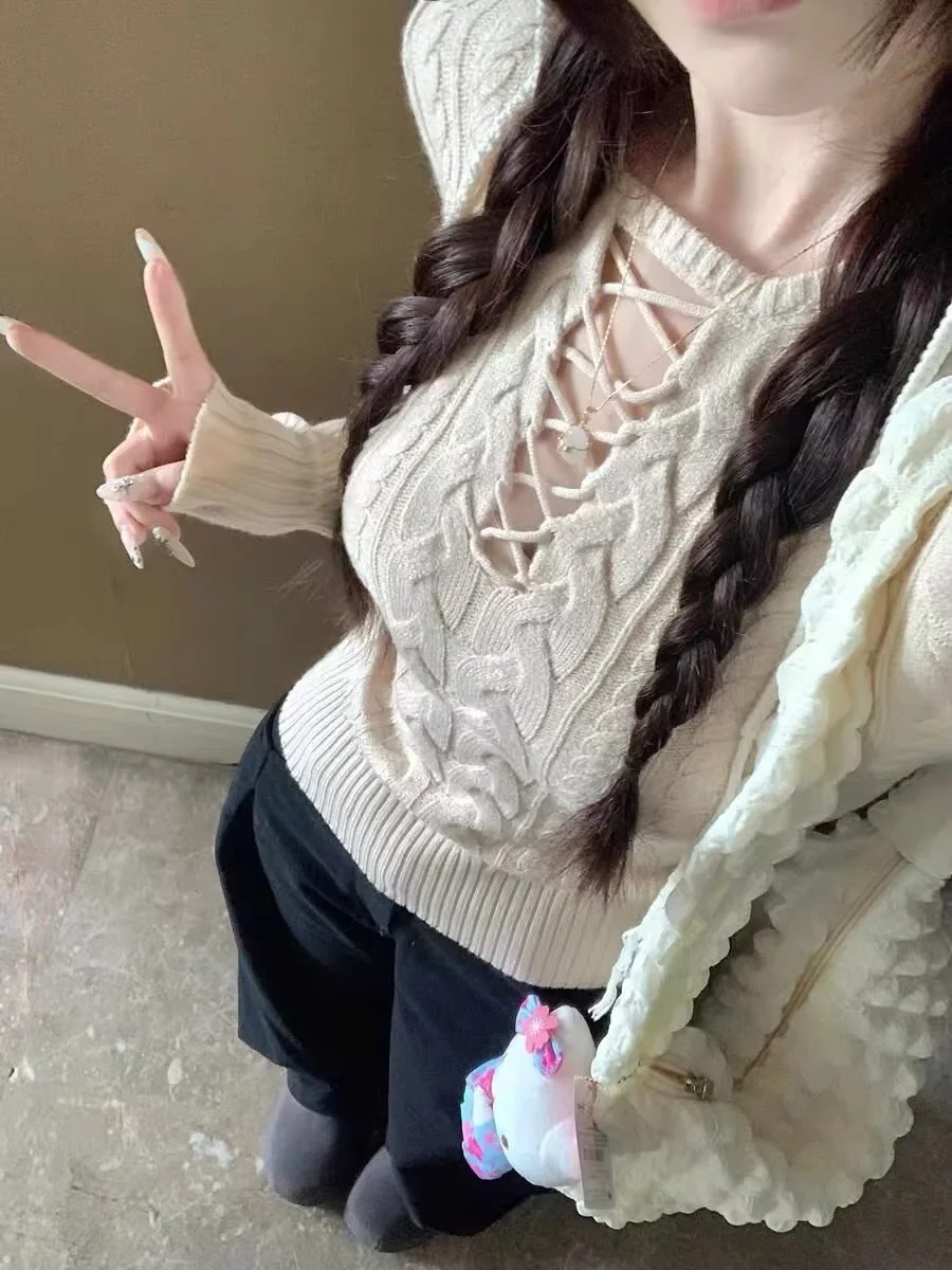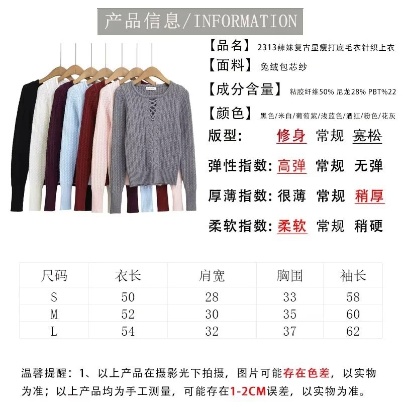 캘리포니아 대학 스타일 빈티지 디자인 타이트 허리 슬리밍 베이스 스웨터 여성의 가을과 겨울 슬림 핏 내부 스웨터 탑
