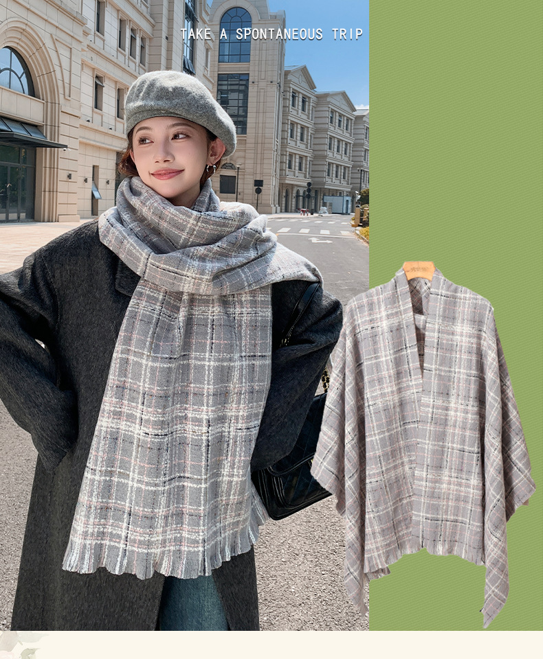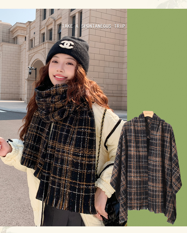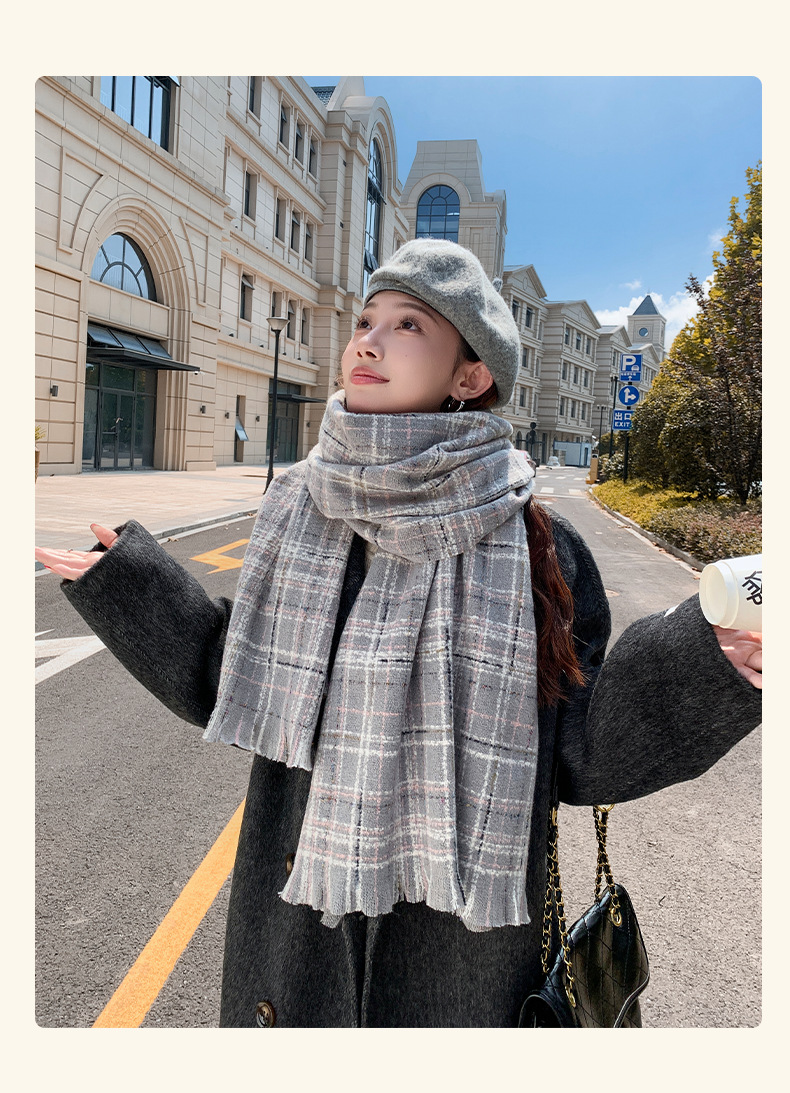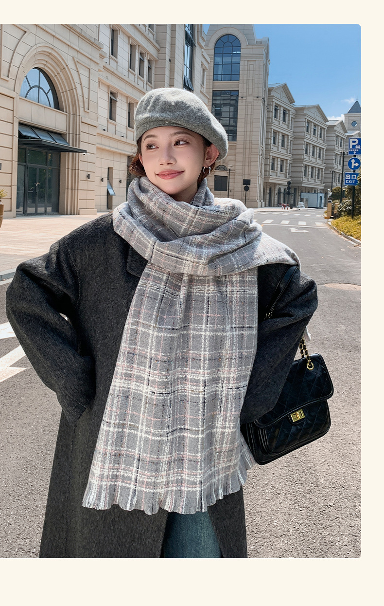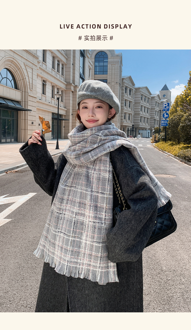 2024 새로운 스타일 스카프 여자 겨울 하이 엔드 한국 스타일 올 매치 체크 소프트 왁스 캐시미어 두꺼운 따뜻한 스카프스토어 가기