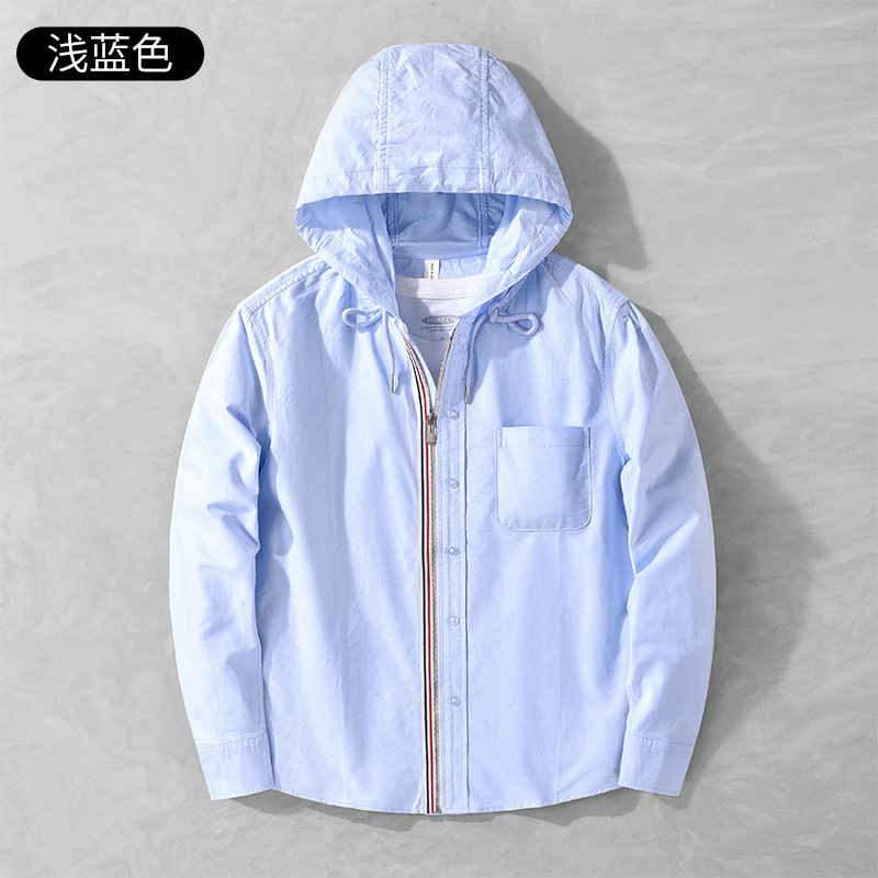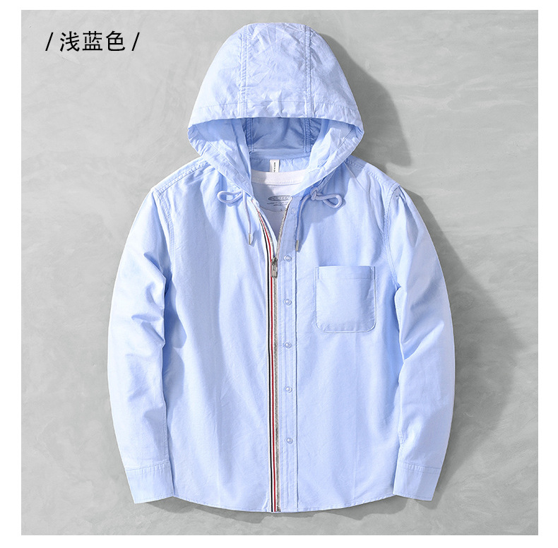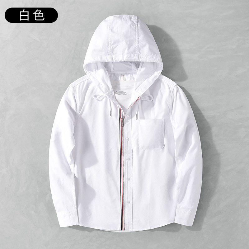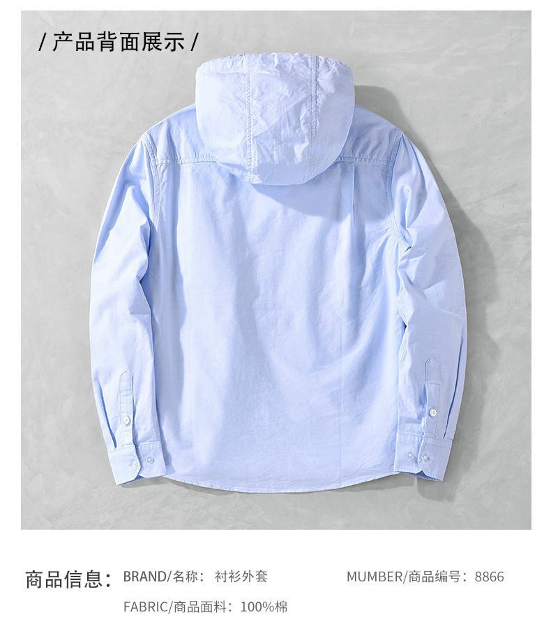 8866 크로스보더 남성용 순면 멋진 지퍼 셔츠 일본 스타일 슬림핏 문학적 트렌디 남성 심플 후드 셔츠 재킷스토어 가기