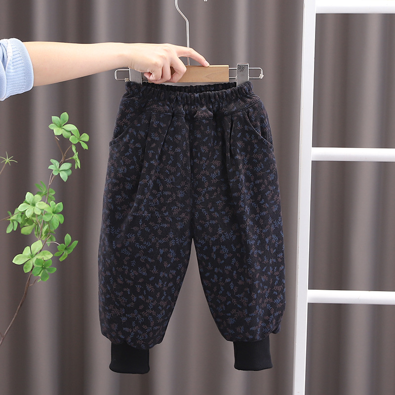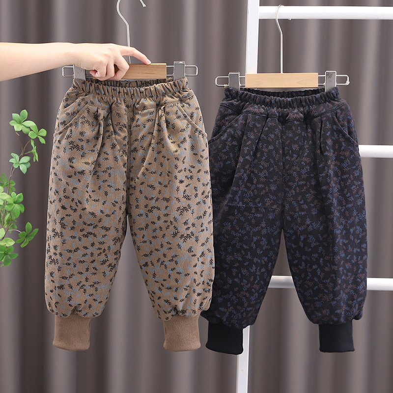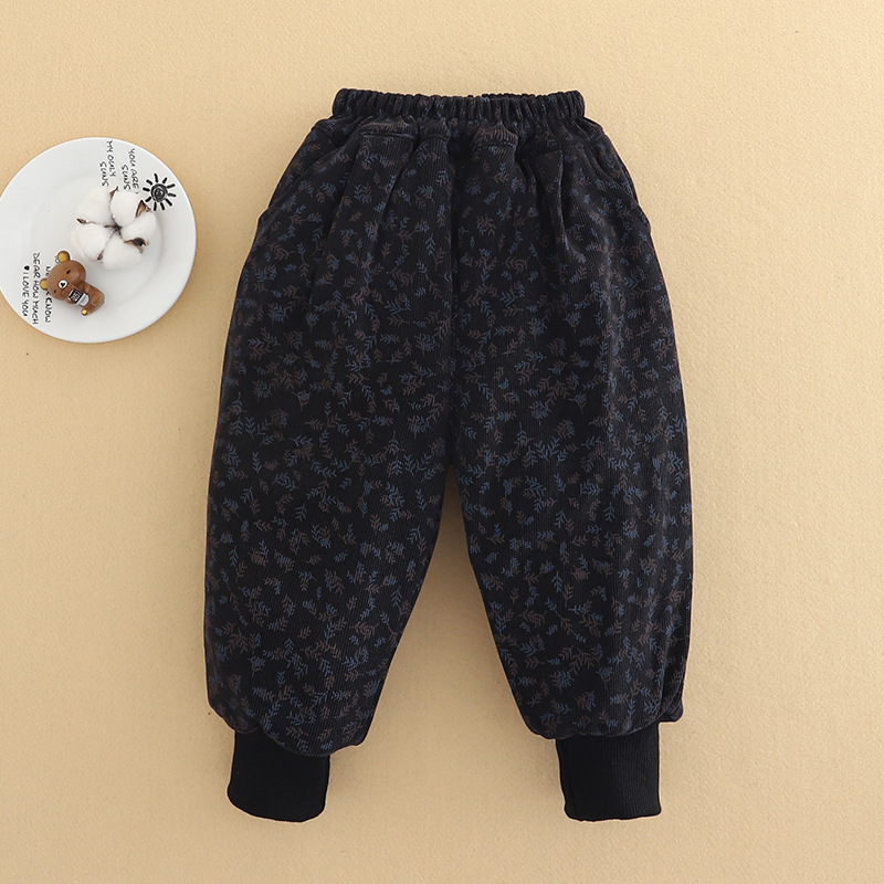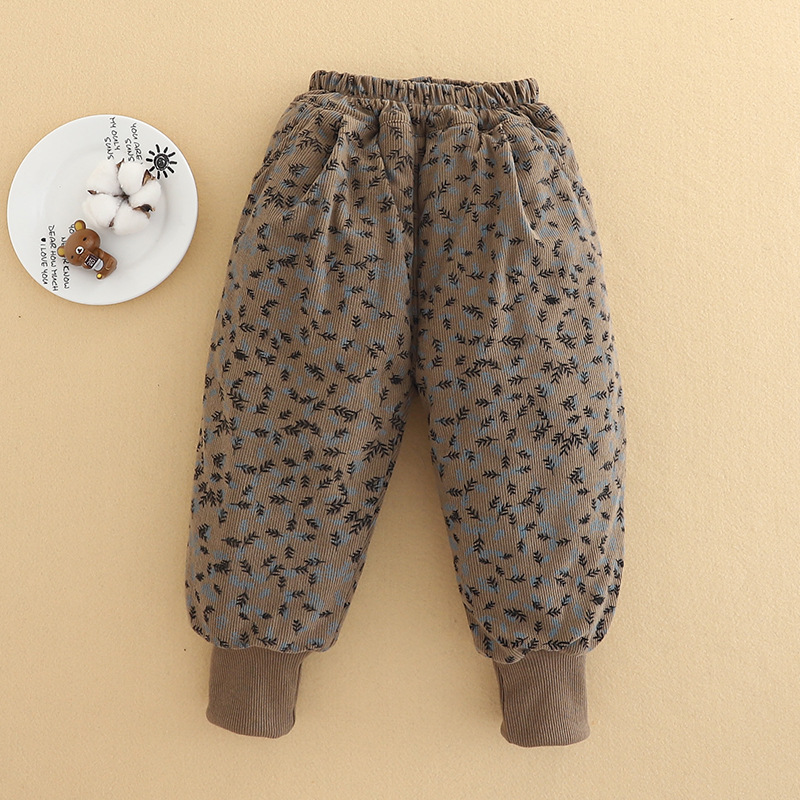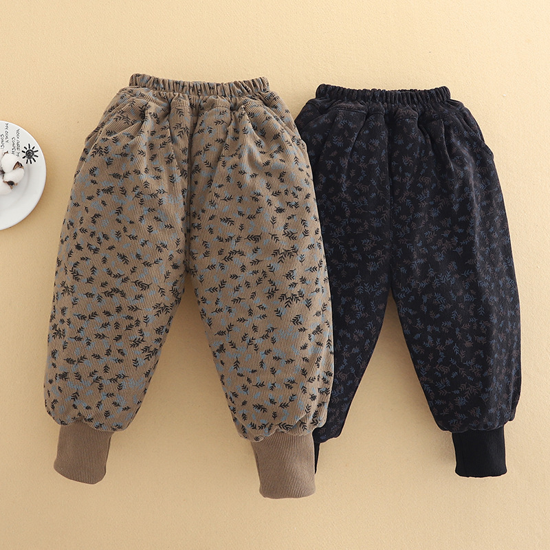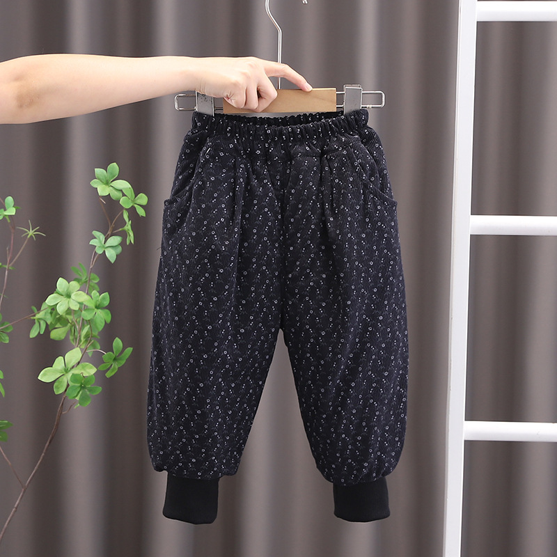 아기 소녀의 기모 두꺼운 면화 바지 2024 겨울 새 한 겨울 소년의 따뜻한 바지 캐주얼 유행 올매치