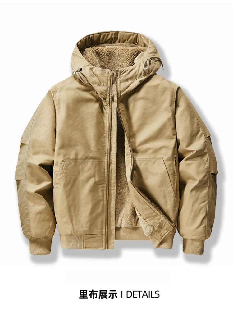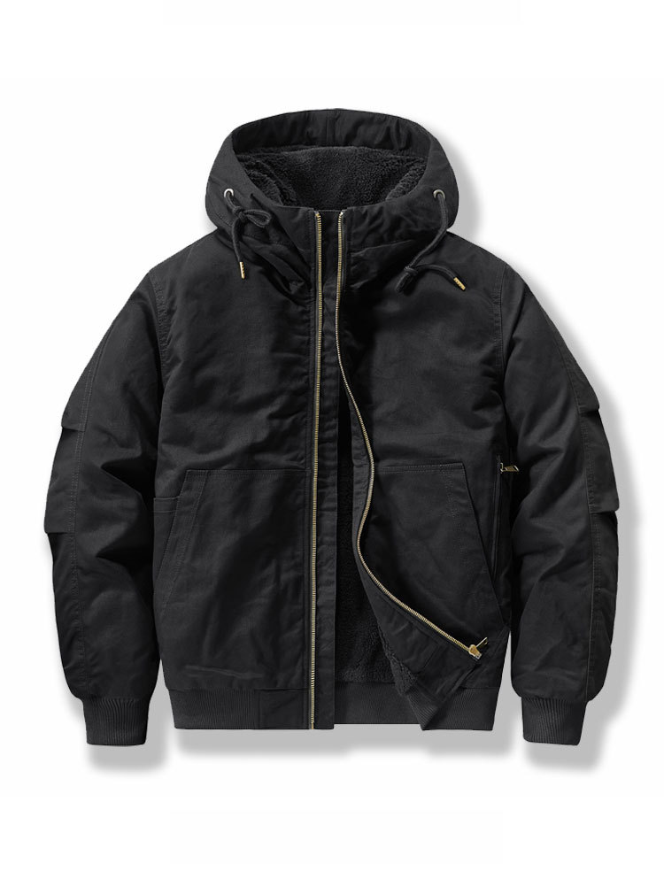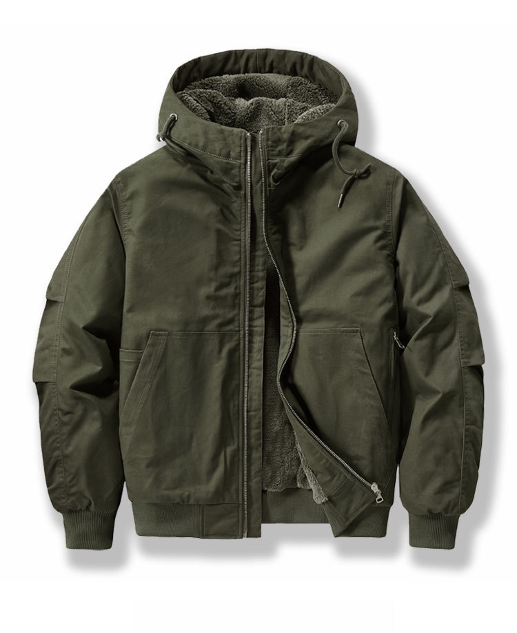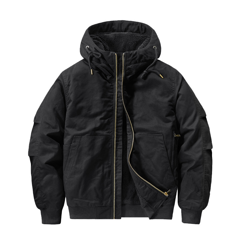 국경 간 새로운 재킷 가을과 겨울 코트 남성용 코튼 코트 기모 두꺼운 퓨어 코튼 툴링 플라잉 짧은 플러스 사이즈 후드