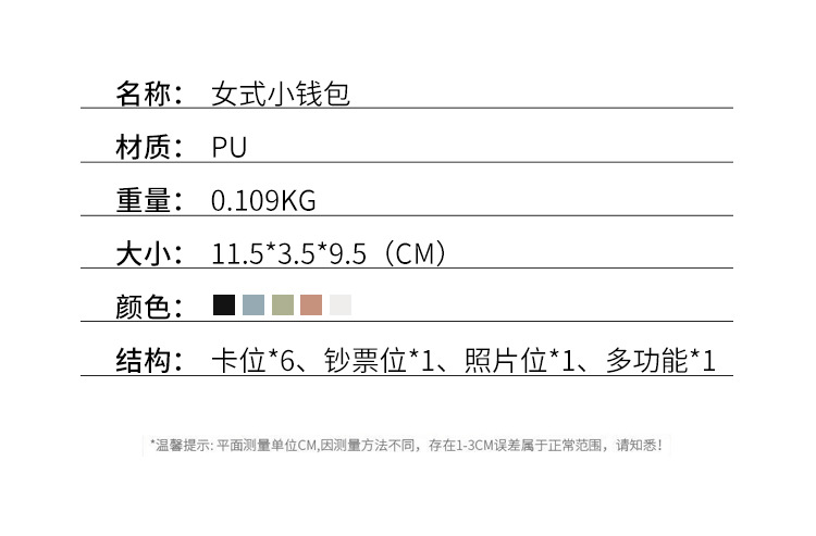 새로운 국경 여성 대용량 짧은 지갑 솔리드 컬러 리치 패턴 여성의 멀티 카드 지갑