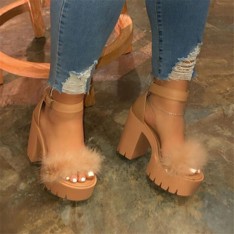 유럽과 미국의 대외 무역 플러스 사이즈 마오 마오 원 캐릭터 하이힐 샌들 여성 크로스 보더 한 캐릭터 버클 두꺼운 발 방수 플랫폼 패션 신발