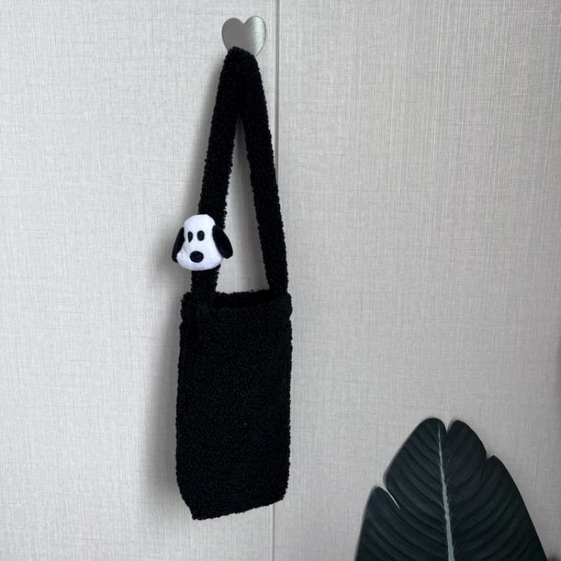 • 플러시 컵 커버(검은색 바닥 강아지 머리가 달린 어깨 끈)