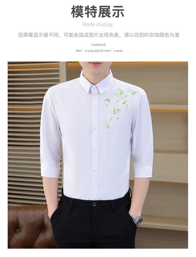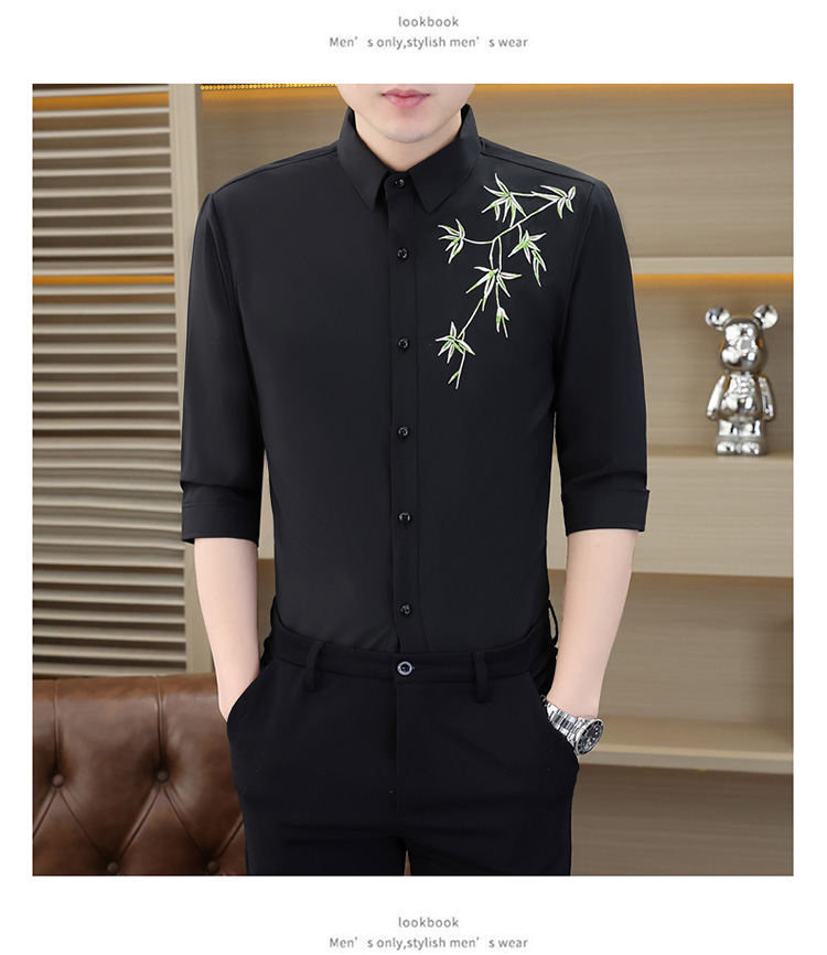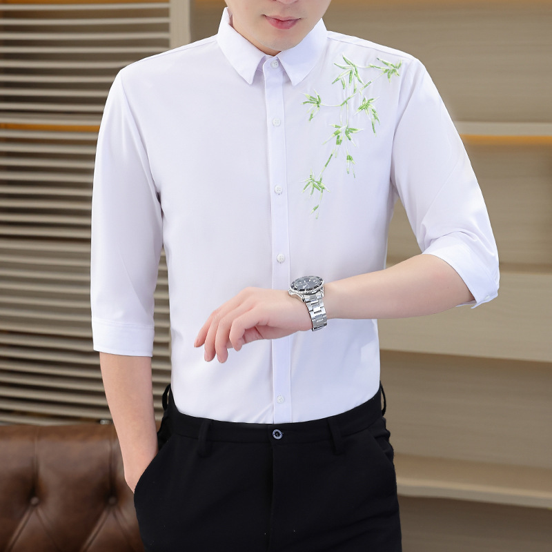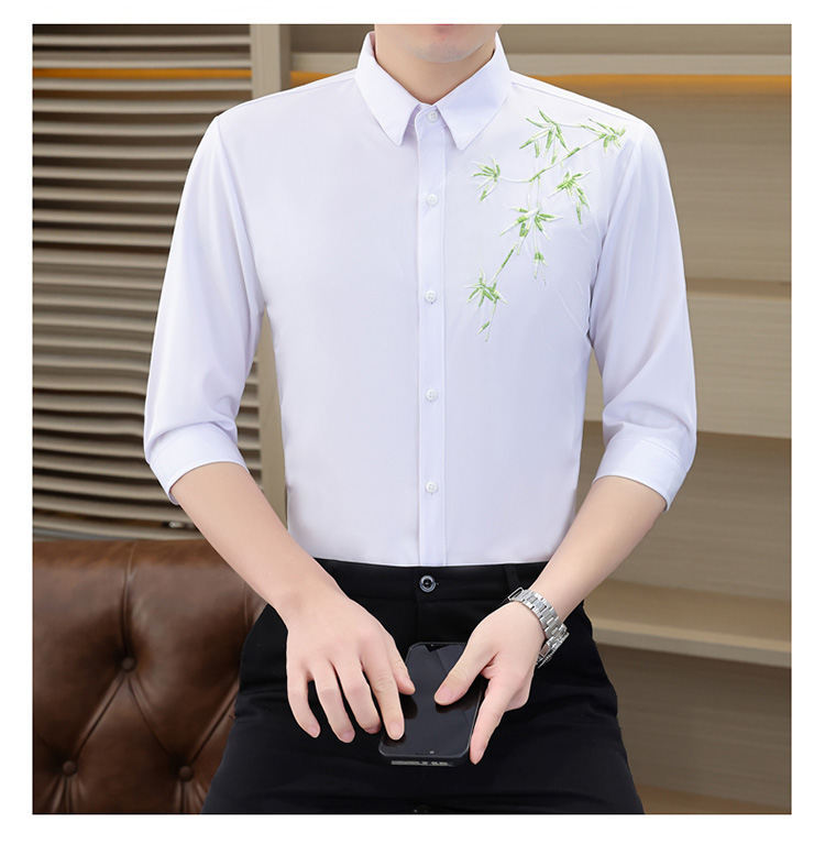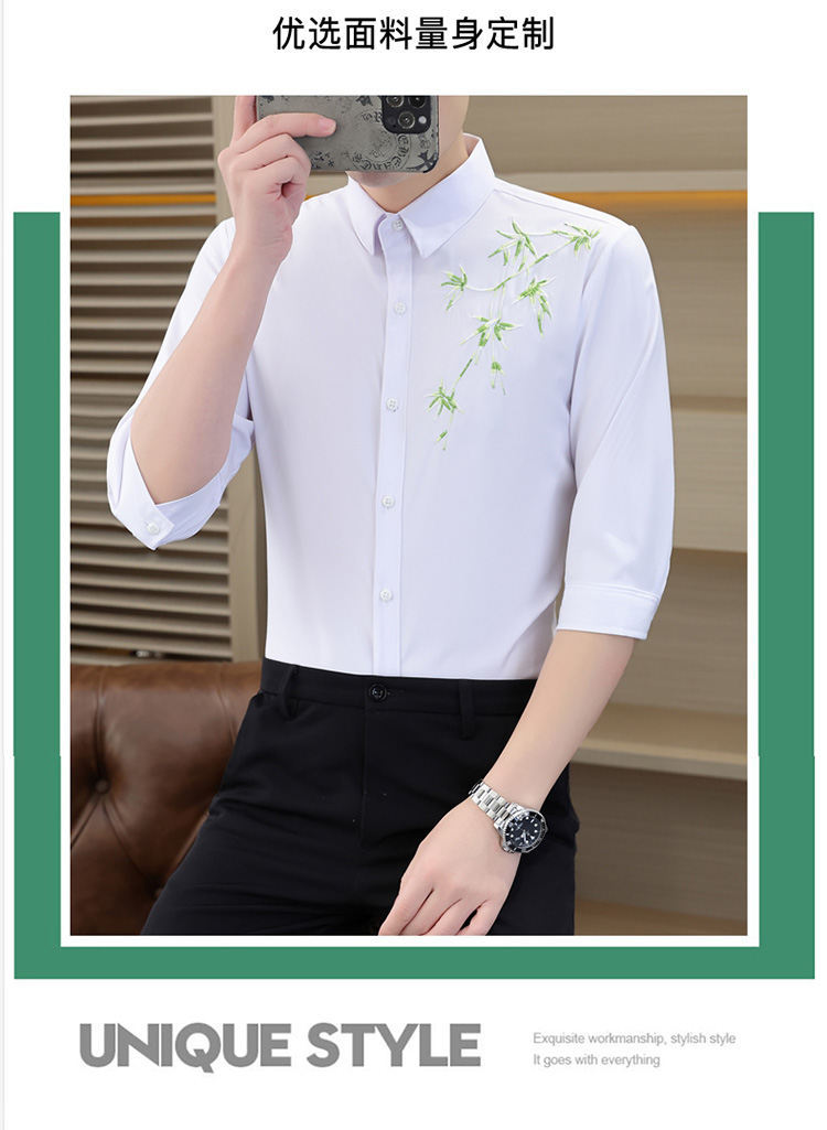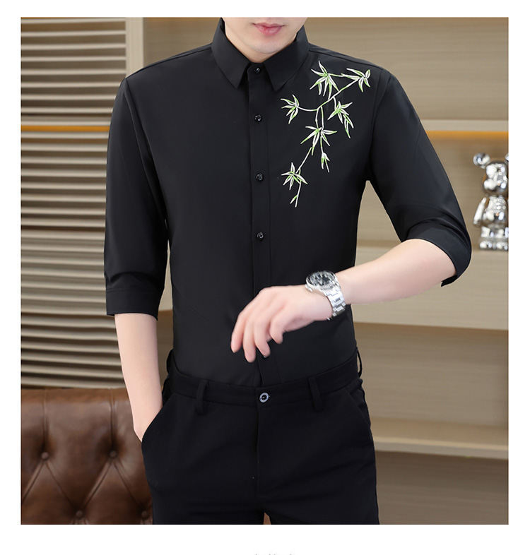 국경 간 대외 무역 AliExpress 남성 셔츠 폭발 추천 중국 스타일 대나무 잎 셔츠 중간 소매 자수 7 점 소매
