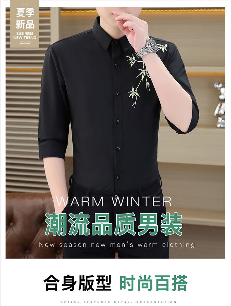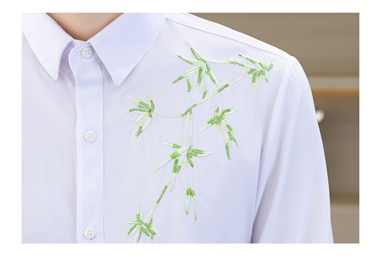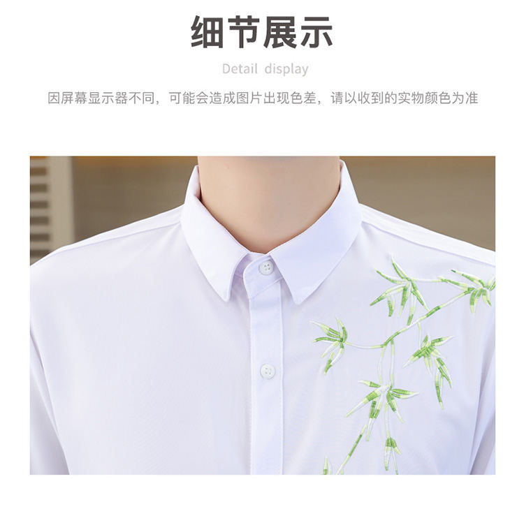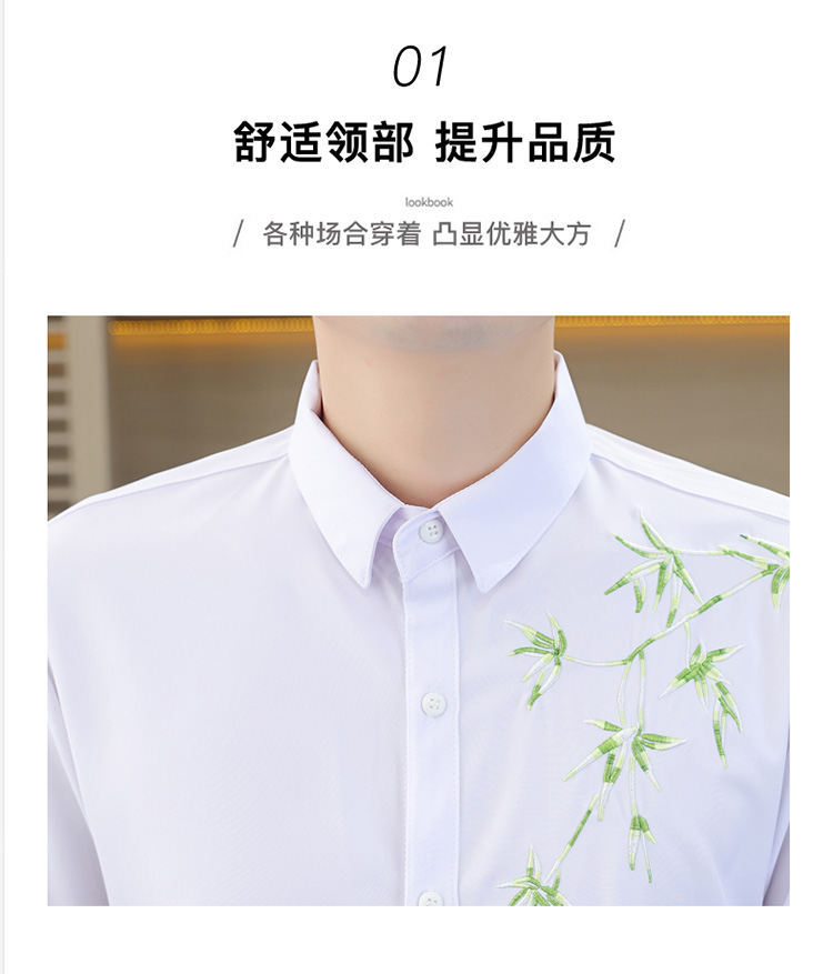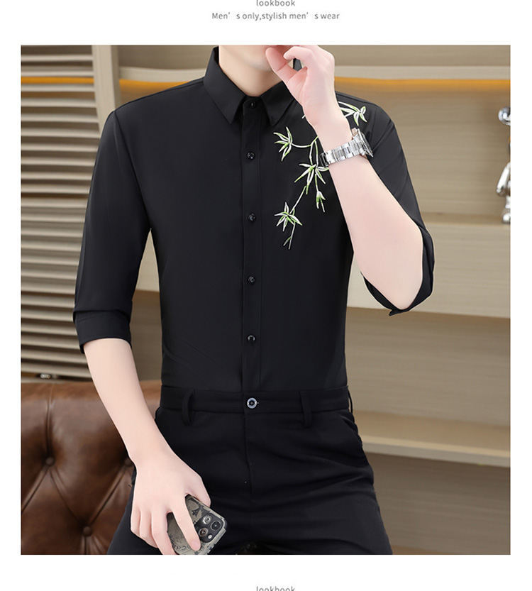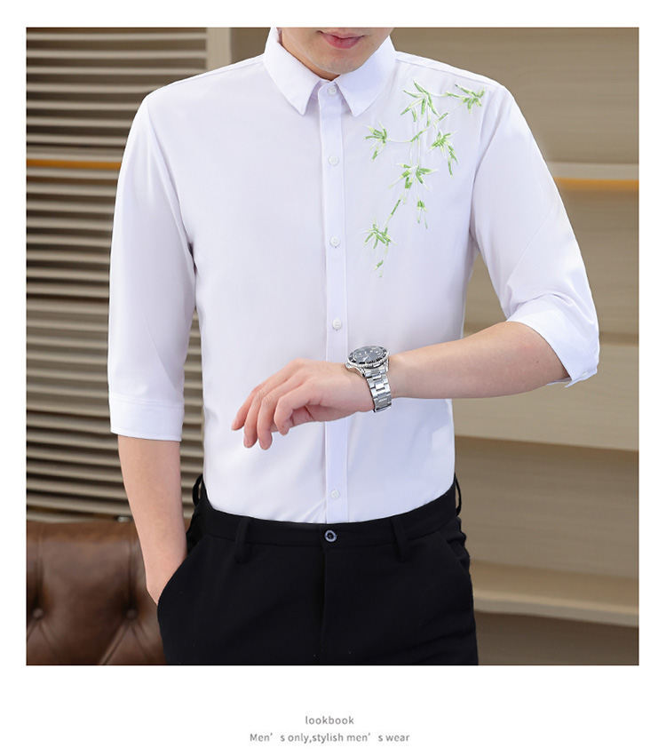 국경 간 대외 무역 AliExpress 남성 셔츠 폭발 추천 중국 스타일 대나무 잎 셔츠 중간 소매 자수 7 점 소매