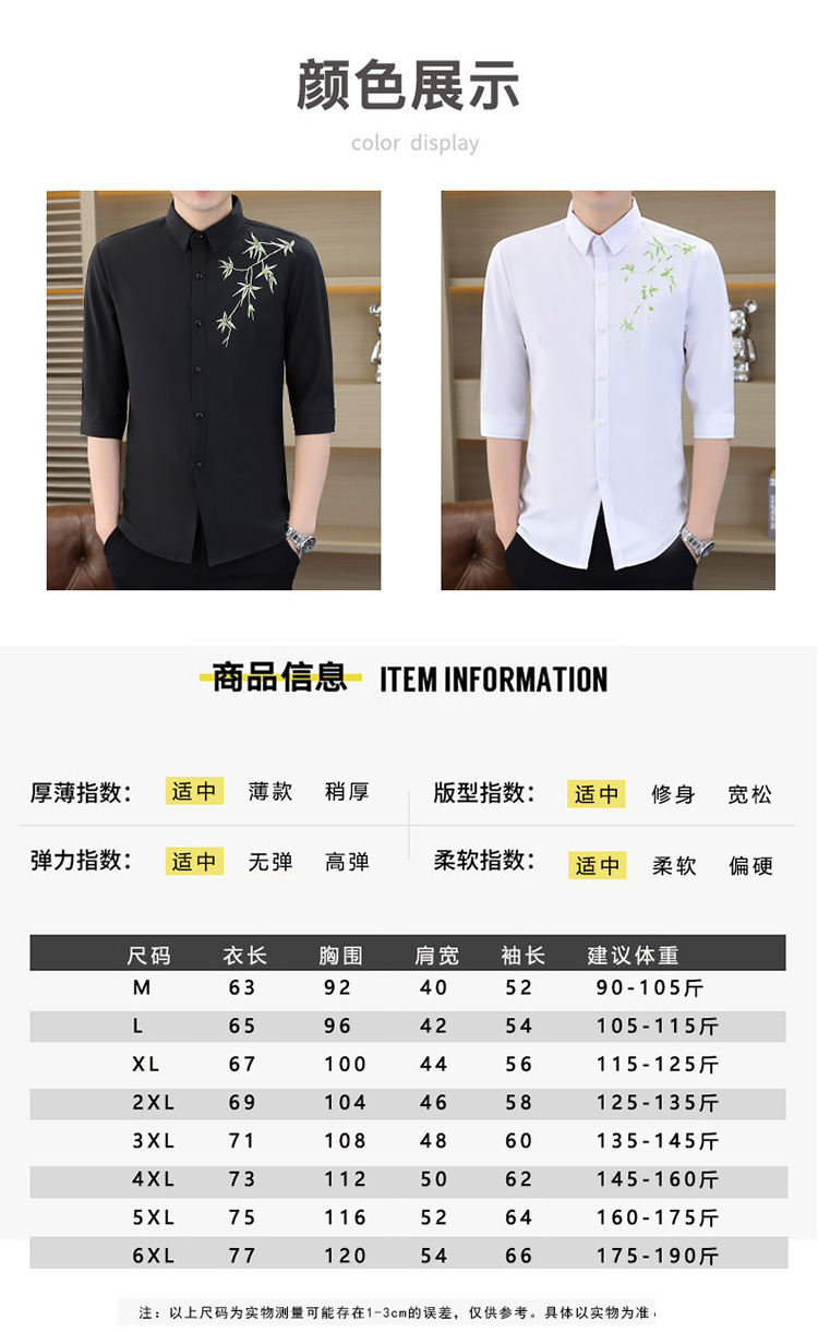 국경 간 대외 무역 AliExpress 남성 셔츠 폭발 추천 중국 스타일 대나무 잎 셔츠 중간 소매 자수 7 점 소매스토어 가기