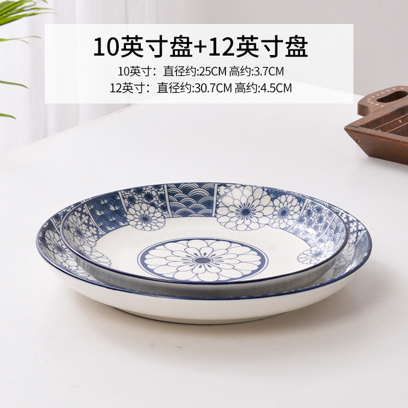 • [청색 및 흰색 모델] (12+14)인치 깊이 접시 각 1개
