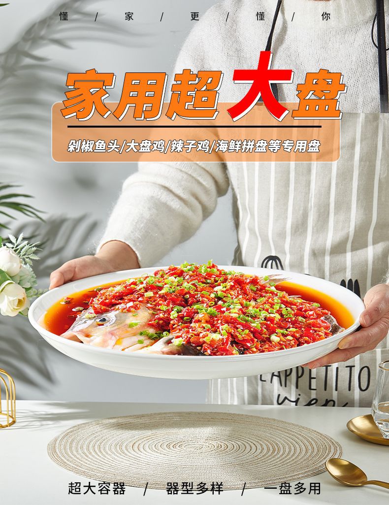 다진 고추 생선 머리 대형 플레이트 치킨 특수 플레이트 찐 생선 플레이트 가정용 딥 플레이트 세라믹 접시 플레이트 새로운 초대형 플레이트
