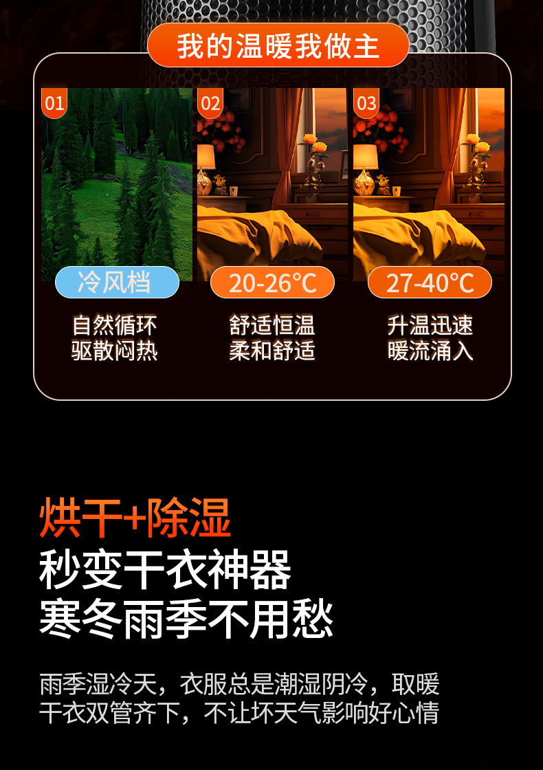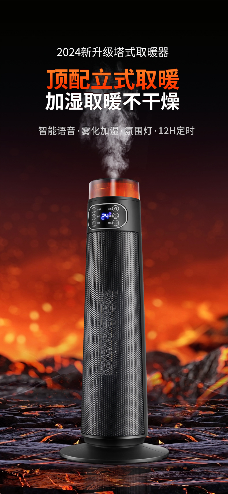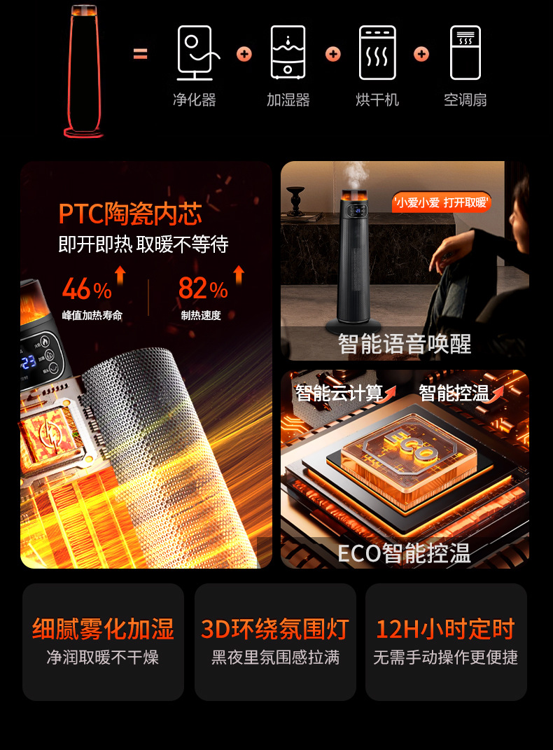 2024 새로운 지능형 가습 히터 고출력 200W0 히터 세라믹 PTC 난방 가정용 전기 히터스토어 가기