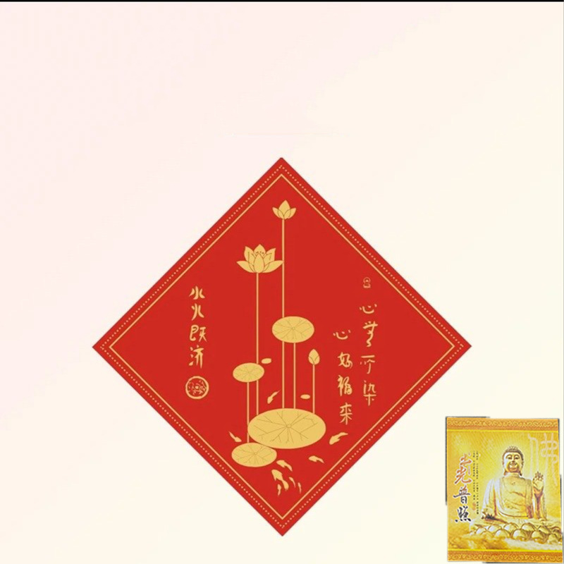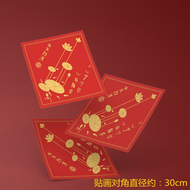 • 다이아몬드 모양의 연꽃 스티커 대각선 약 30CM + 카드 + 부의 신 스티커