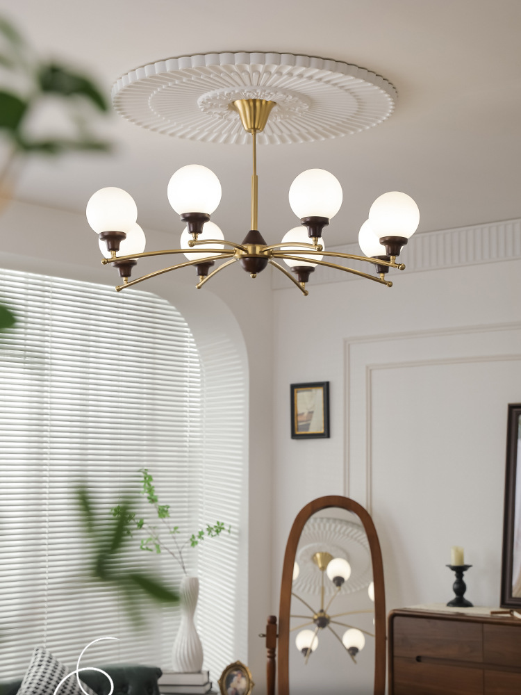 프랑스 복고풍 거실 샹들리에 미국 중세 난양 스타일 단단한 나무 마술 콩 램프 바우 하우스 마스터 침실 led 식당