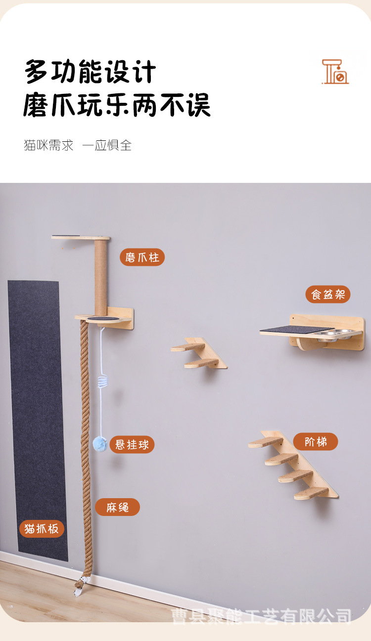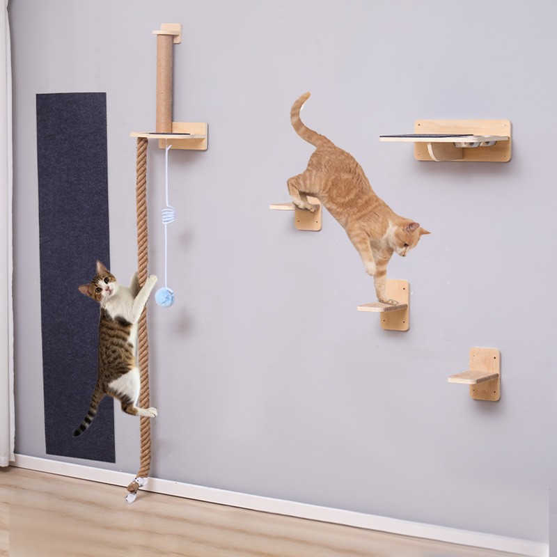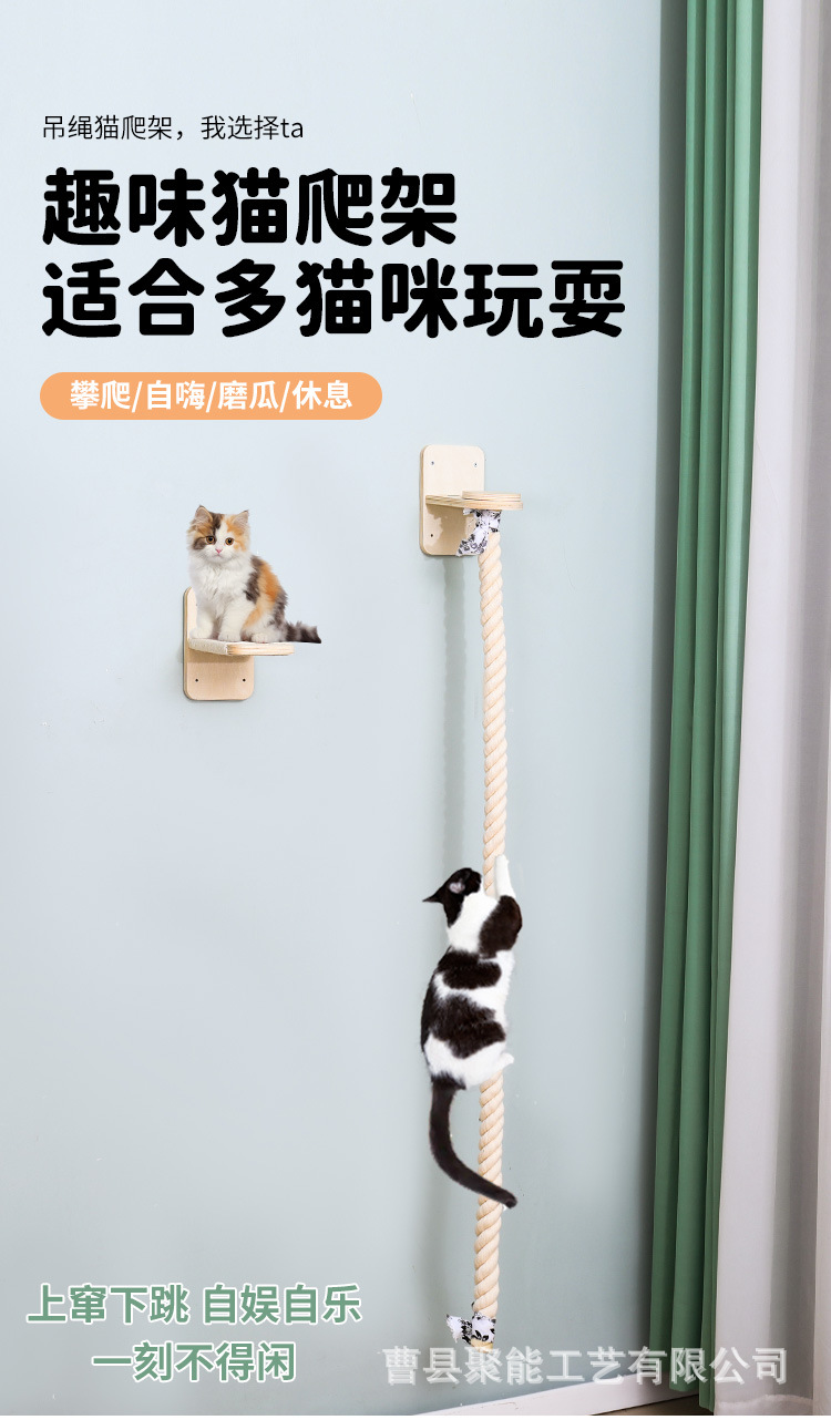 고양이 등반 랙 하늘 고양이 랙 단단한 나무 고양이 등반 밧줄 큰 고양이 밧줄 사다리 고양이 점프 플랫폼 세트스토어 가기