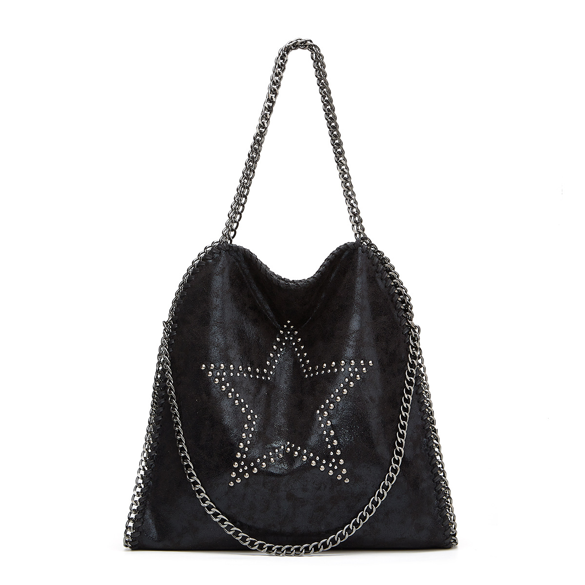 유럽과 미국의 레트로 5 개 별 리벳 체인 여성의 패셔너블 여성용 대용량 싱글 숄더 크로스 바디 휴대용 크로스 보더 여성용 가방